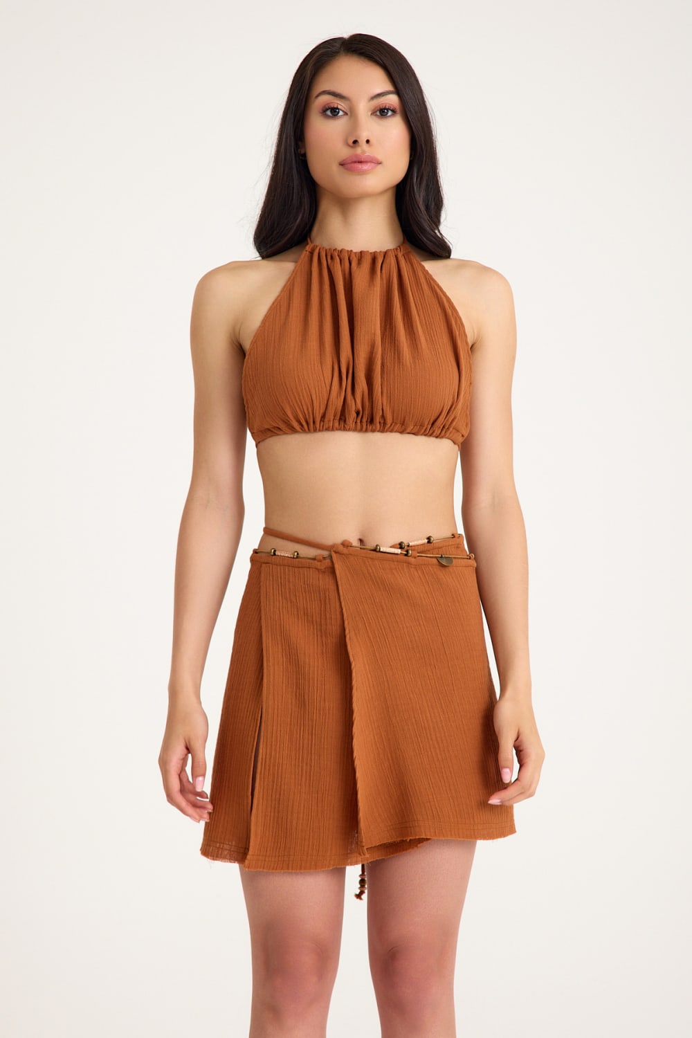 Plaj kaçamakları veya rahat yaz akşamları için mükemmel bir seçim olan anvelop etek takımımızla yaza şık bir şekilde adım atın. %100 pamuktan üretilen bu set, tarzdan ödün vermeden üstün konfor sunuyor. Etek, zanaatkâr işçiliğin özünü yansıtan karmaşık etnik boncuklara sahiptir. İki rengi bulunan bu ürün, geleneksel ayrıntılarla çağdaş tasarımın birleşiminden hoşlananlar için tasarlanmıştır. Uyumlu, göz alıcı bir kombin için onu uyumlu üst kısmıyla eşleştirin.