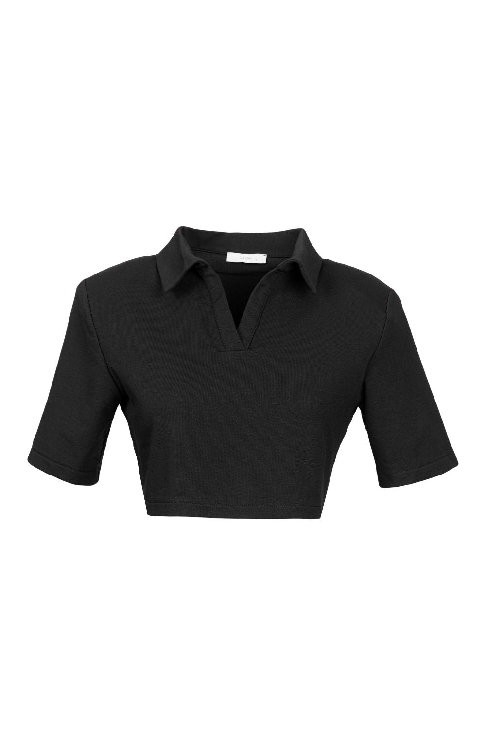 Laulei Polo Yaka Vatkalı Crop Tişört – Cool Görünüm, Rahat Stil