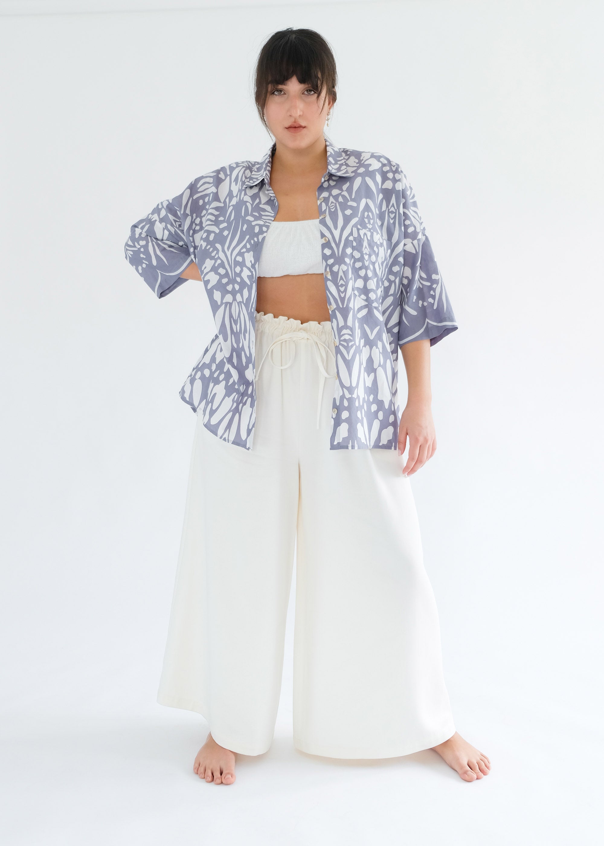 Artık baskılı pamuk kumaştan üretilen bu kısa kollu oversize keten gömlek, özgün kelebek etkisi desenleri ile tarzınıza enerjik bir dokunuş katıyor. Rahat oversize kesimi, önden düğmeli kapaması ve kullanışlı göğüs cepleri sayesinde hem gündelik şehir stillerinde hem de tatil kombinlerinde kolayca yer bulan çok yönlü bir parça. Hafif ve nefes alabilen %100 keten dokusu, sıcak havalarda maksimum konfor sunarken modern silüetiyle stilinizi zahmetsizce tamamlıyor.