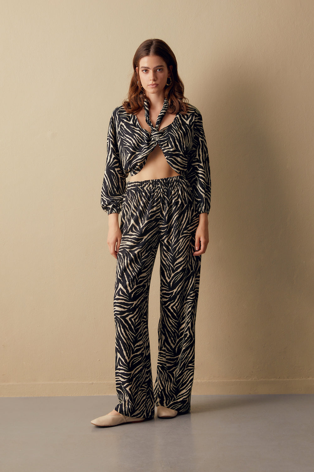 Dökümlü pantolonBol kesimBeli lastikliRahat kalıpYumuşak yapılıDökümlü keten kumaşGünlük kullanıma uygundurPlaj kullanımına uygundurTek bedendir. S, M, L bedenlerine uygundur.Takım olarak bluzu bulunmaktadır
