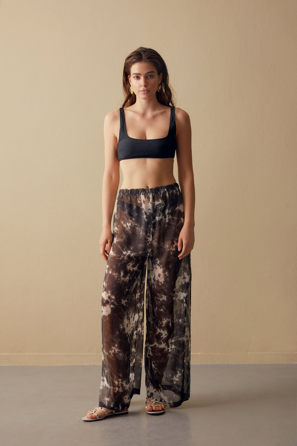 Plaj pantolonuBeli lastikliYandan yırtmaçlı