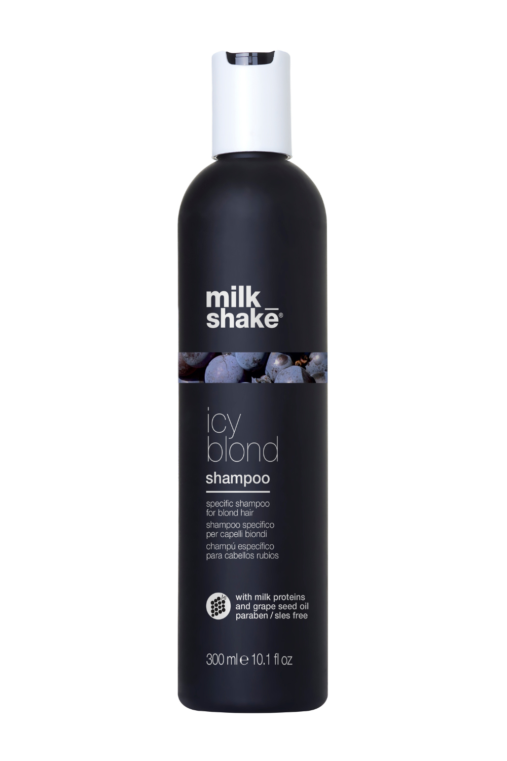 milk_shake® saça soğuk küllü tonlar katmak için özel pigmentlerile geliştirilmiş yeni şampuanı. Çok açık sarı ve platin sarı saçlar için ideal olan icy blond grubu özel bir siyah pigment içerir . sarı saçta istenmeyen sarı ve turuncu tonları nötralize eder ve engeller. Çok açık sarı ve platin sarı saçlara küllü tonlar katar. Gümüş ve gri tonları güçlendirir