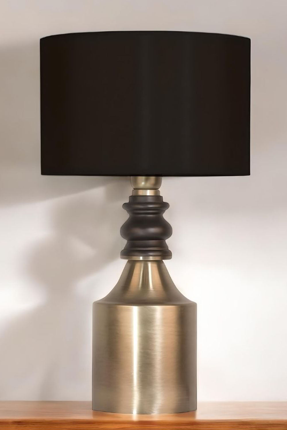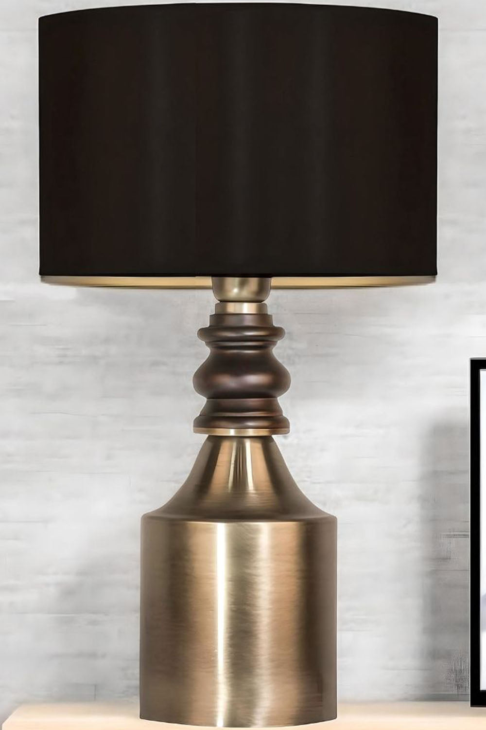 sade siyah kumaş abajuru sayesinde ortama loş, yumuşak bir ışık yayar.