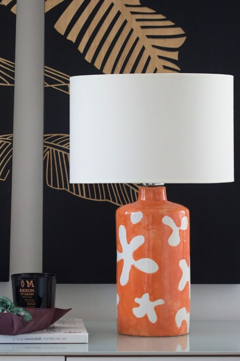 kılar. Dengeli bir kontrast sağlayan krem tonlarında silindirik kumaş abajur,
