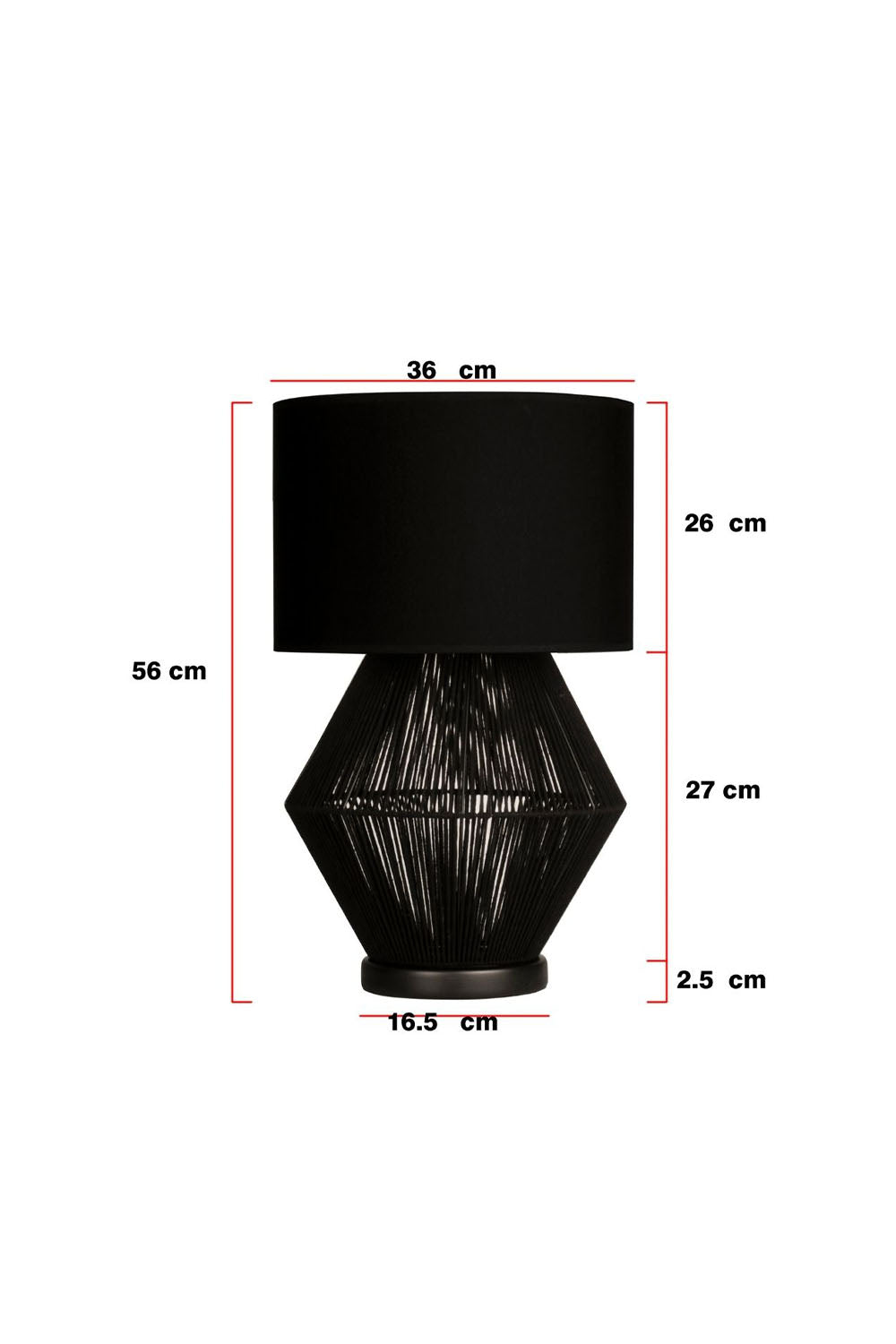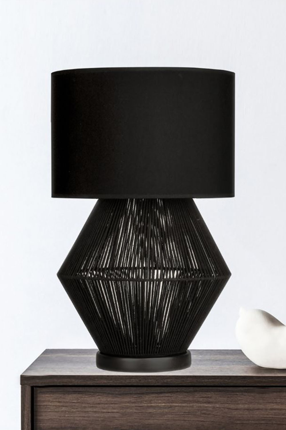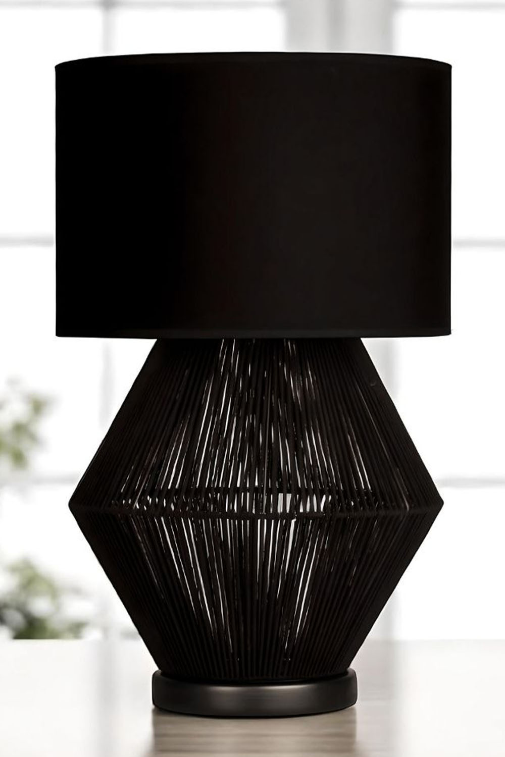 Luna Noir Abajur – Siyah Tel Gövdeli, Siyah Kumaş