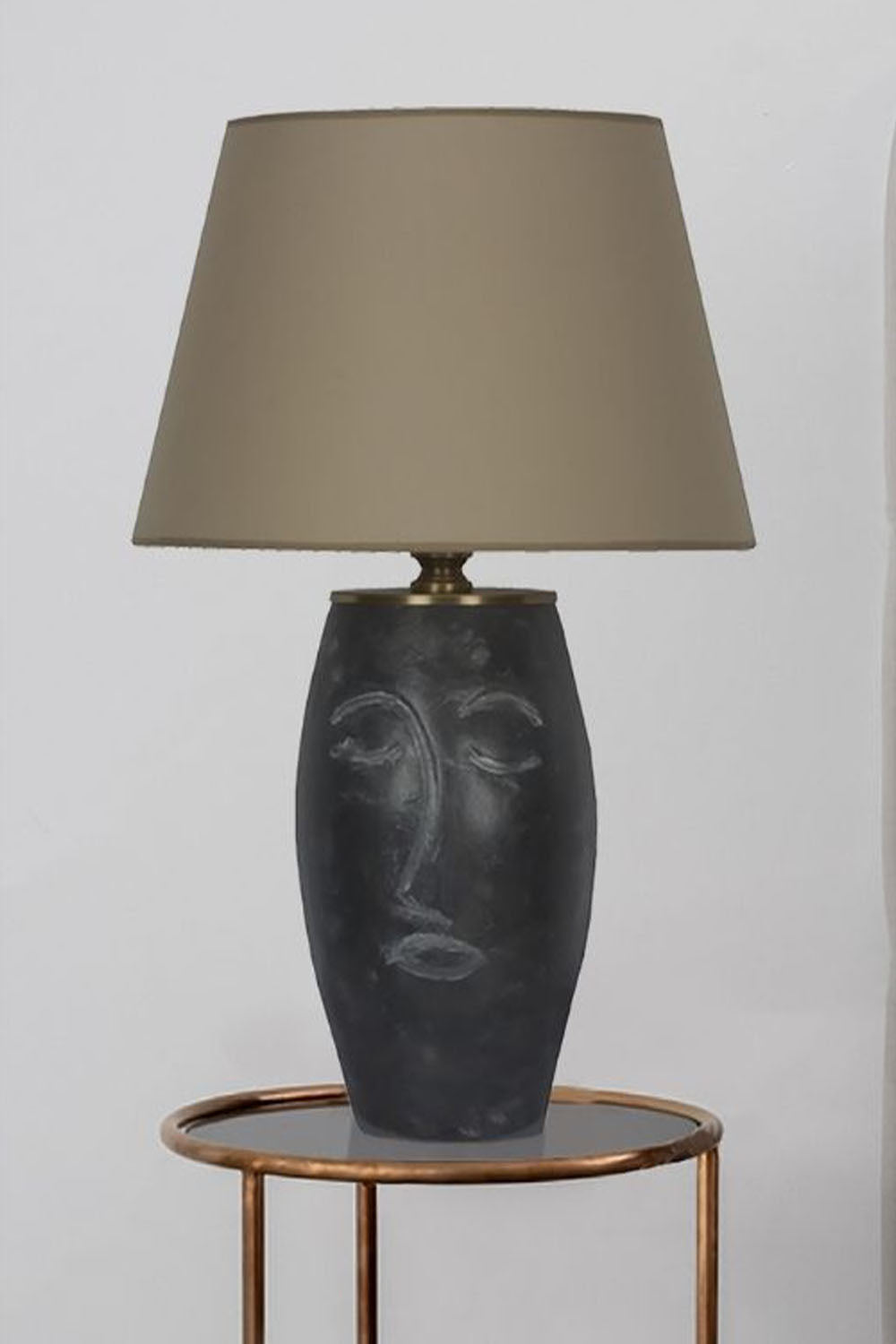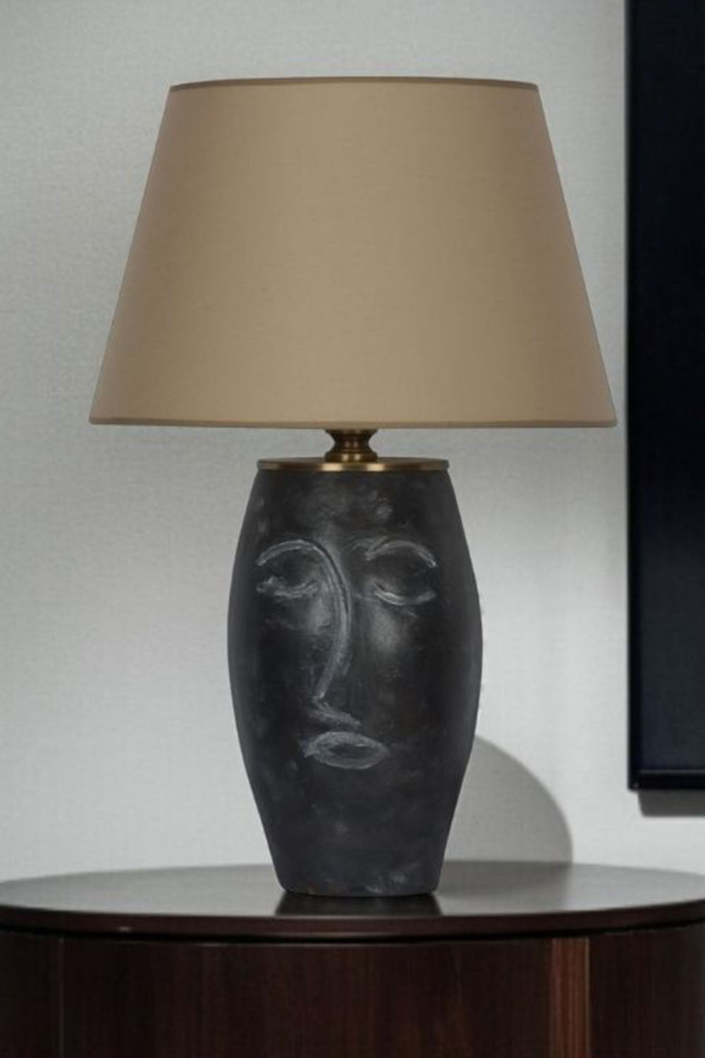 Siyah Abajurlu Yüz Figürlü Seramik Masa Lambası - Bej Başlık
