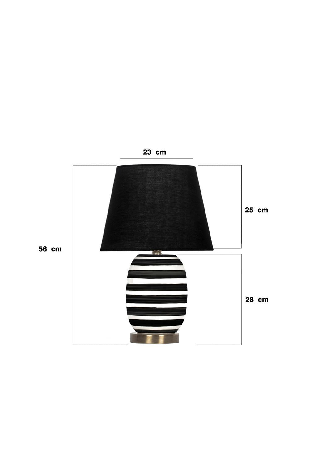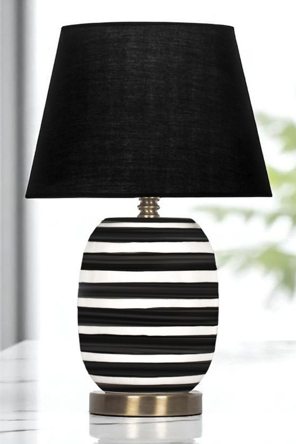 Siyah Beyaz Çizgili Madrıd Seramik Masa Lambası – Siyah Başlık
