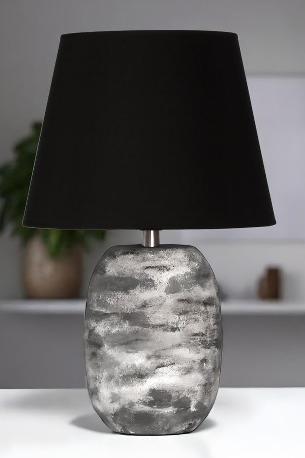 Stonetouch Seramik Abajur – Siyah Şapkalı Doğal Doku