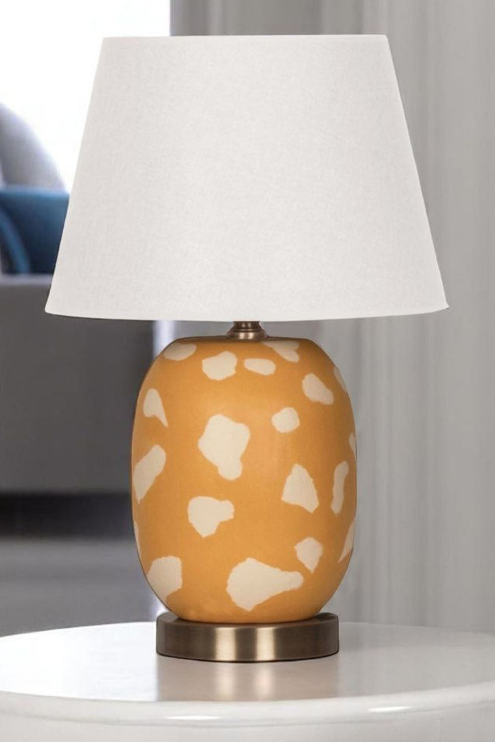 Turuncu Marakesh Seramik Abajur – El Yapımı Otantik Tasarım Ve Zarif Aydınlatma - Krem Dokulu Şapka