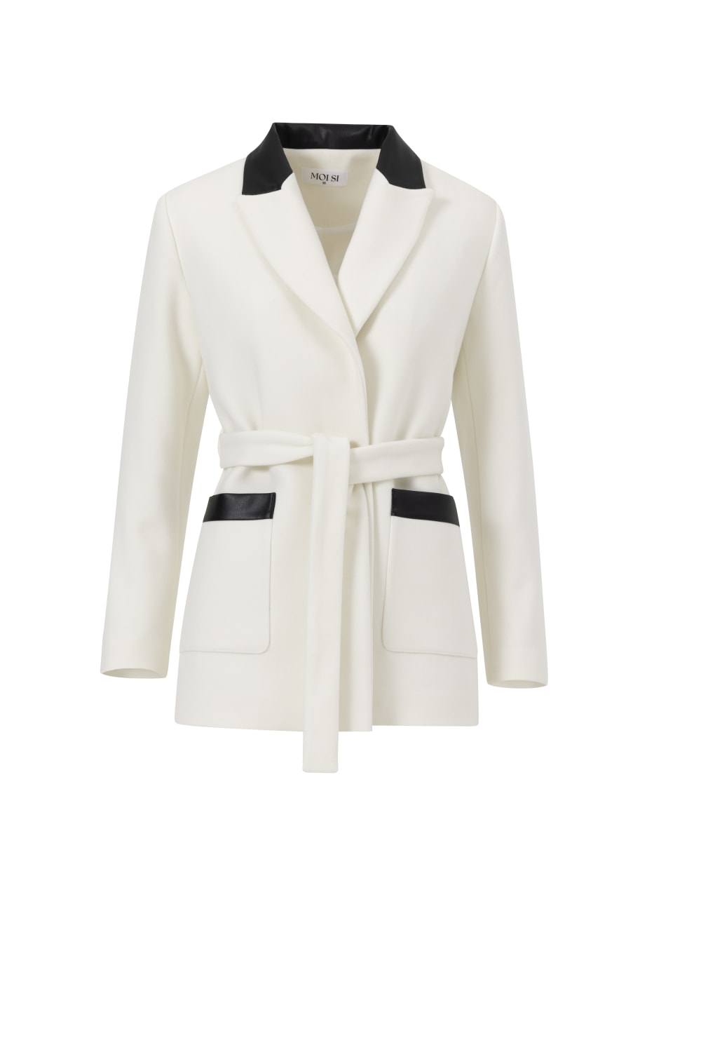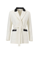 This soft-fabric jacket, featuring lining, shoulder pads, and leather details on the collar and pockets, highlights your elegance with its chic and modern design. Its soft fabric offers comfortable wear, while the leather details make every aspect of the jacket special, reflecting both sophistication and a unique style. Perfect for both everyday wear and special occasions, this jacket will become an essential piece in your wardrobe.