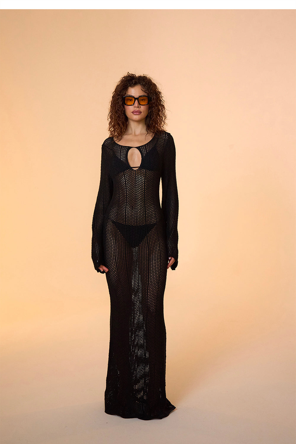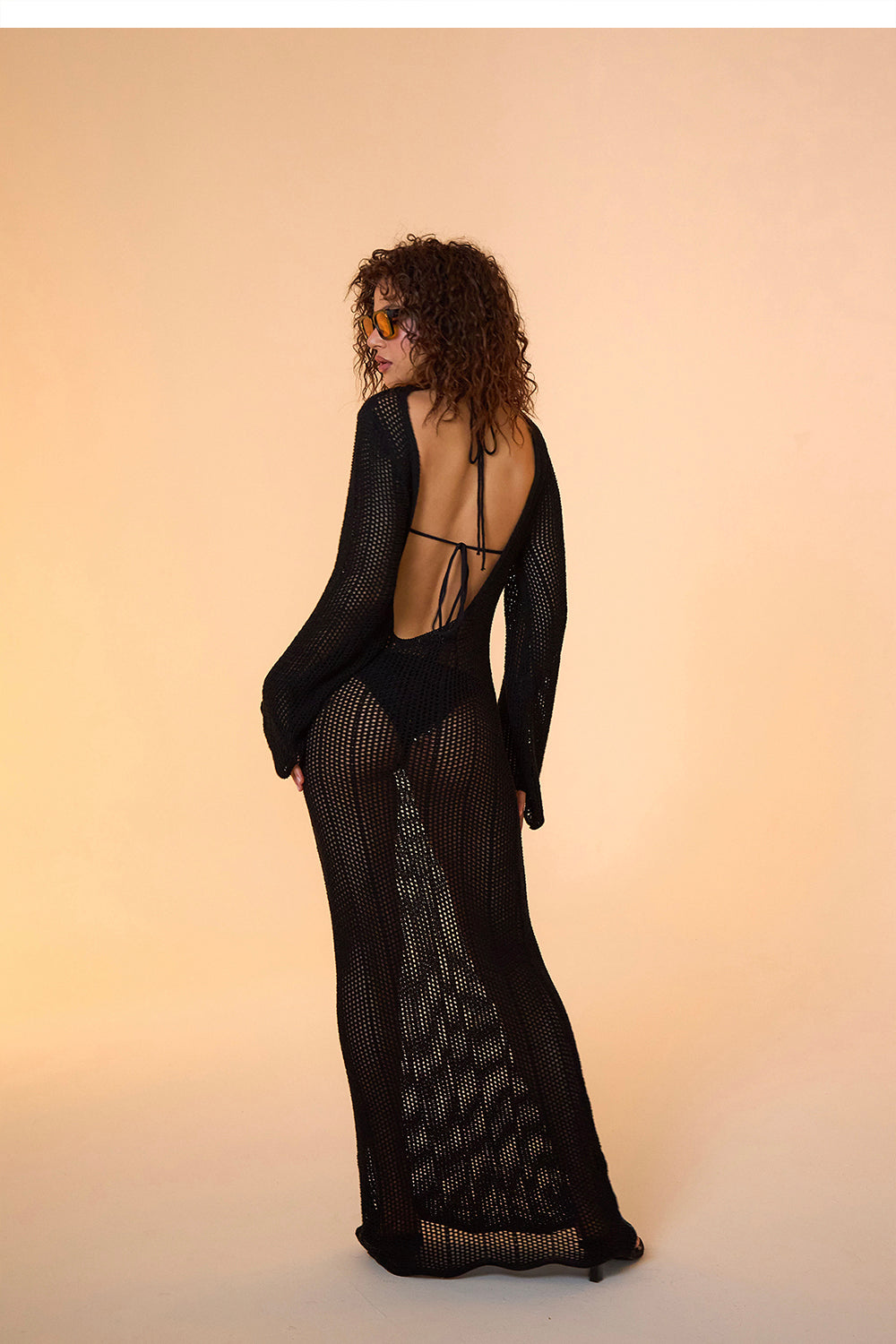Fayelle Halter Yaka Payet Maxi Siyah Gece Elbisesi