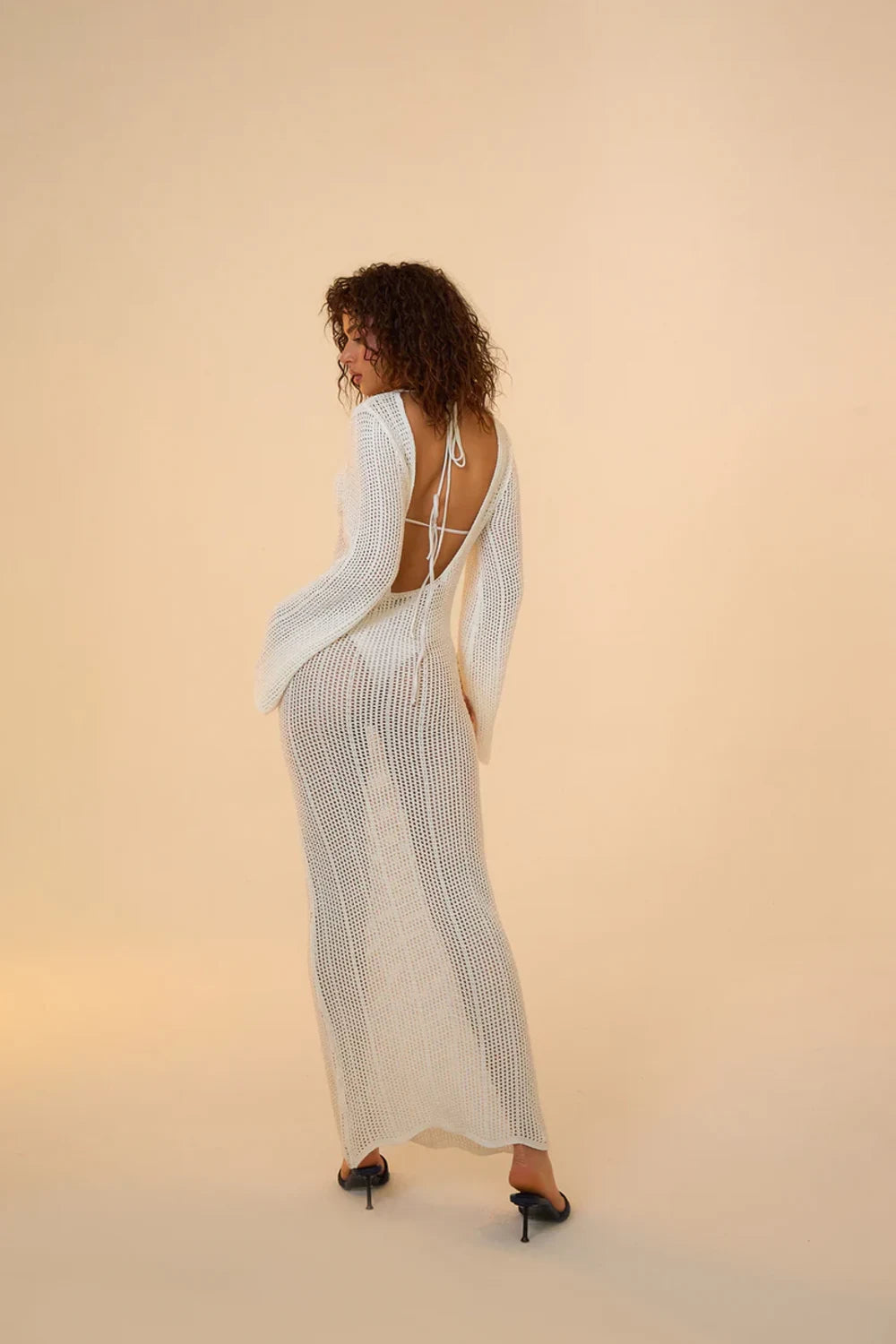 Halley Halter Yaka Maxi Beyaz Saten Elbise