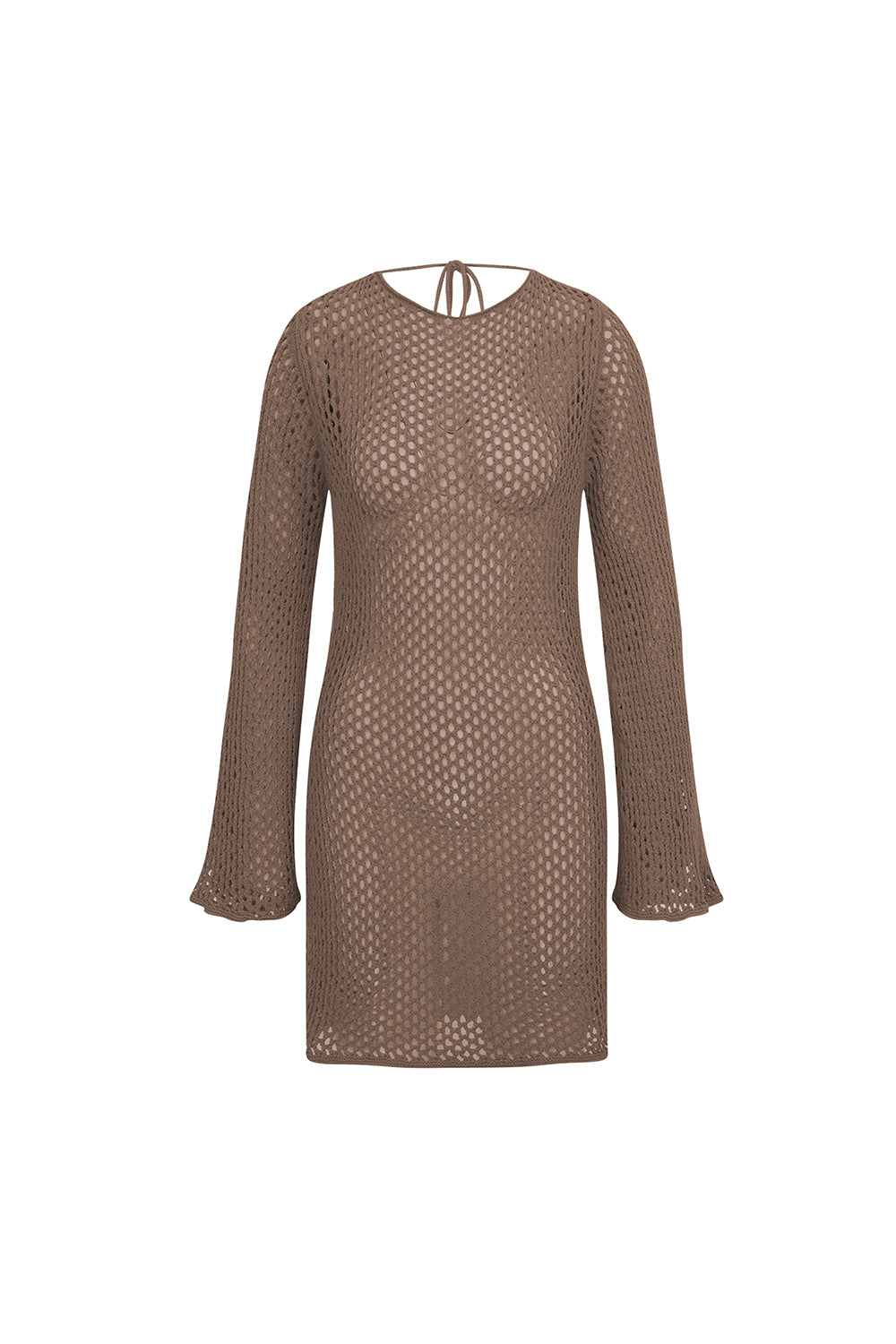 Amoura Kahverengi Halter Yaka Aksesuarlı Mini Elbise