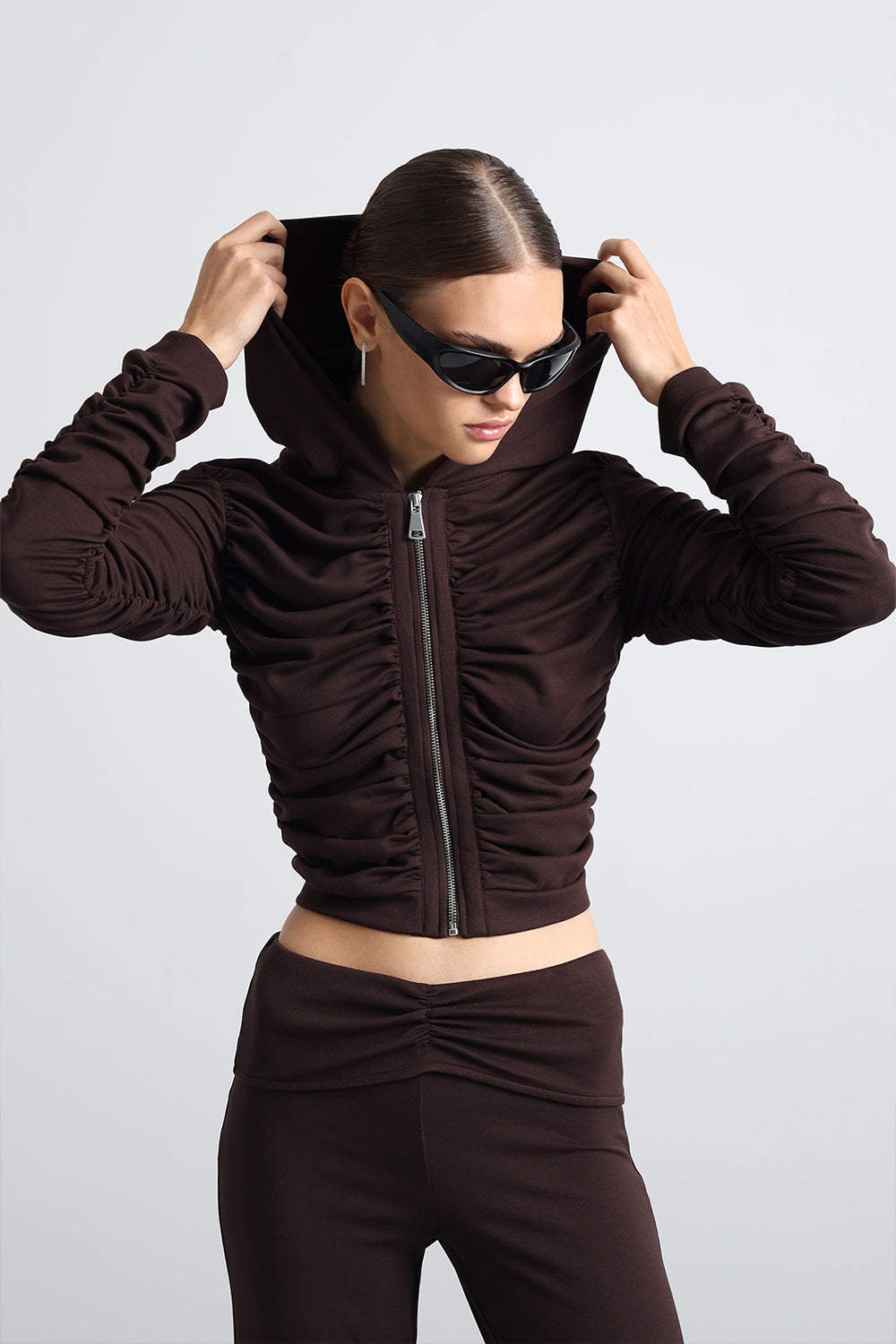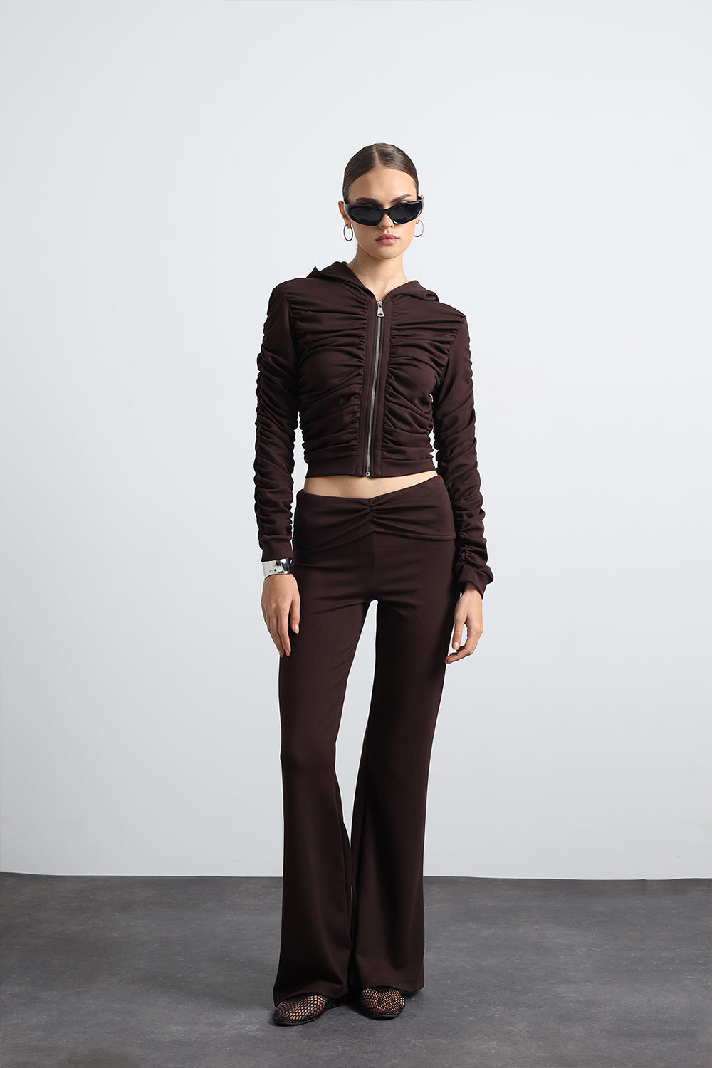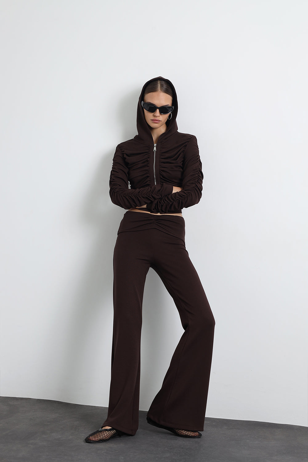 Brenna Büzgü Detaylı Kahverengi Modal Pantolon