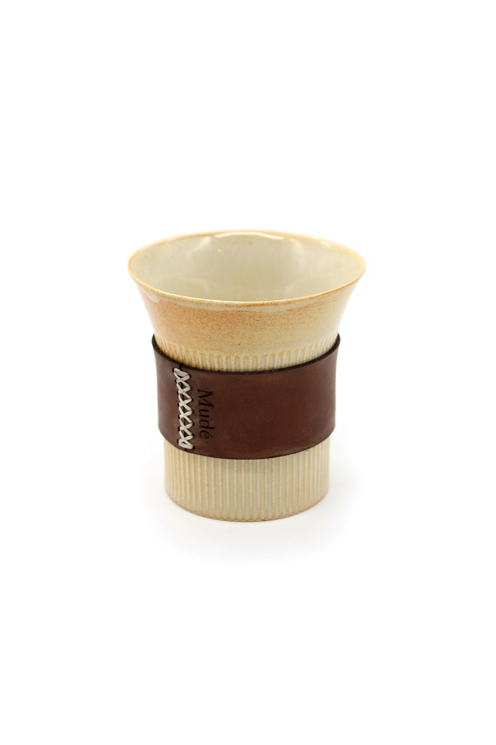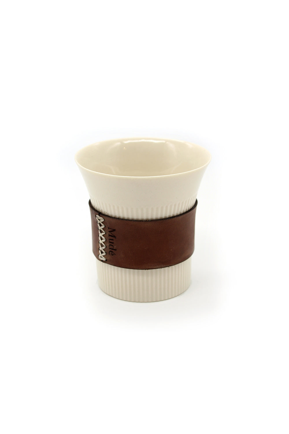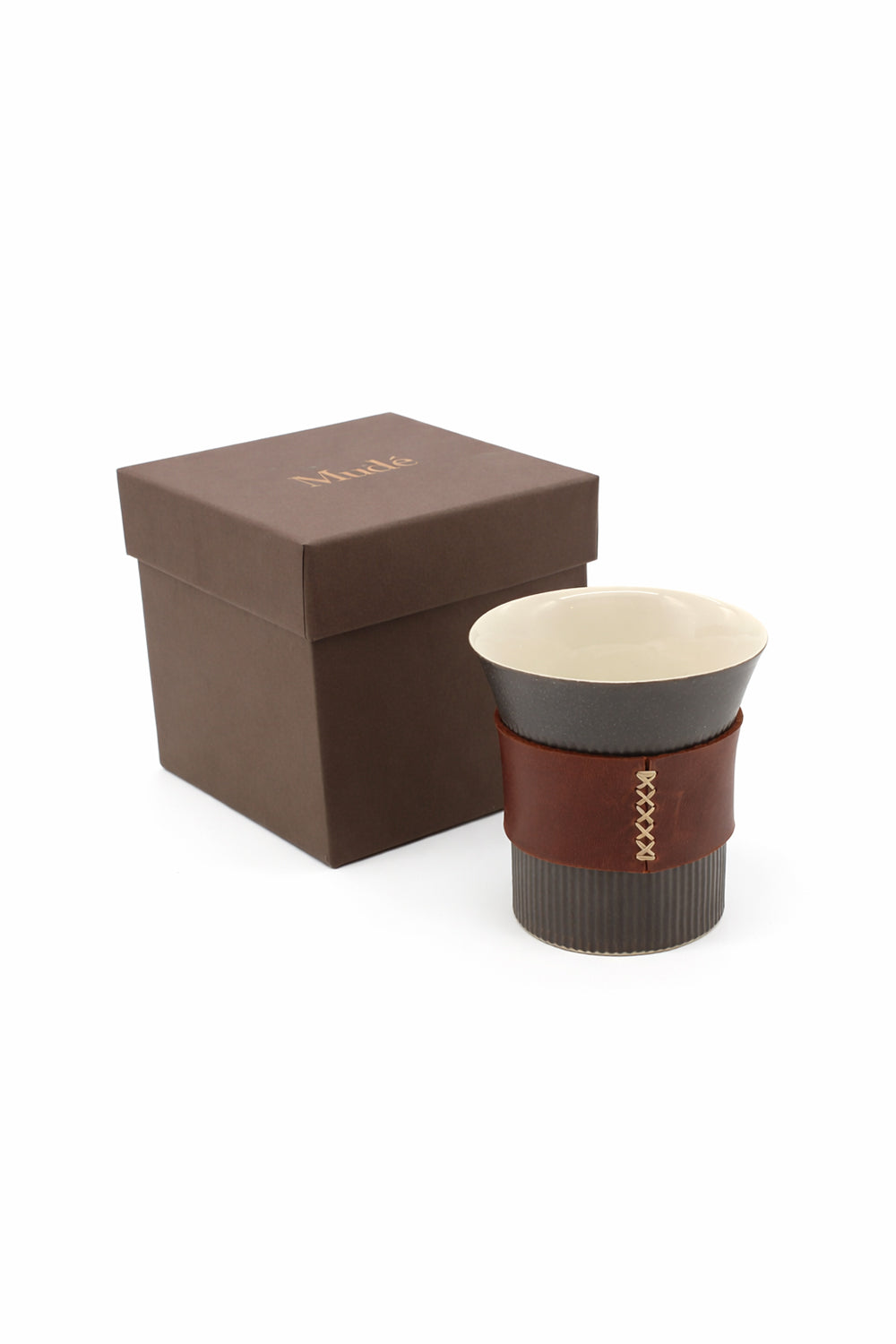 Fluted Stoneware Bardak – Deri Tutacaklı
