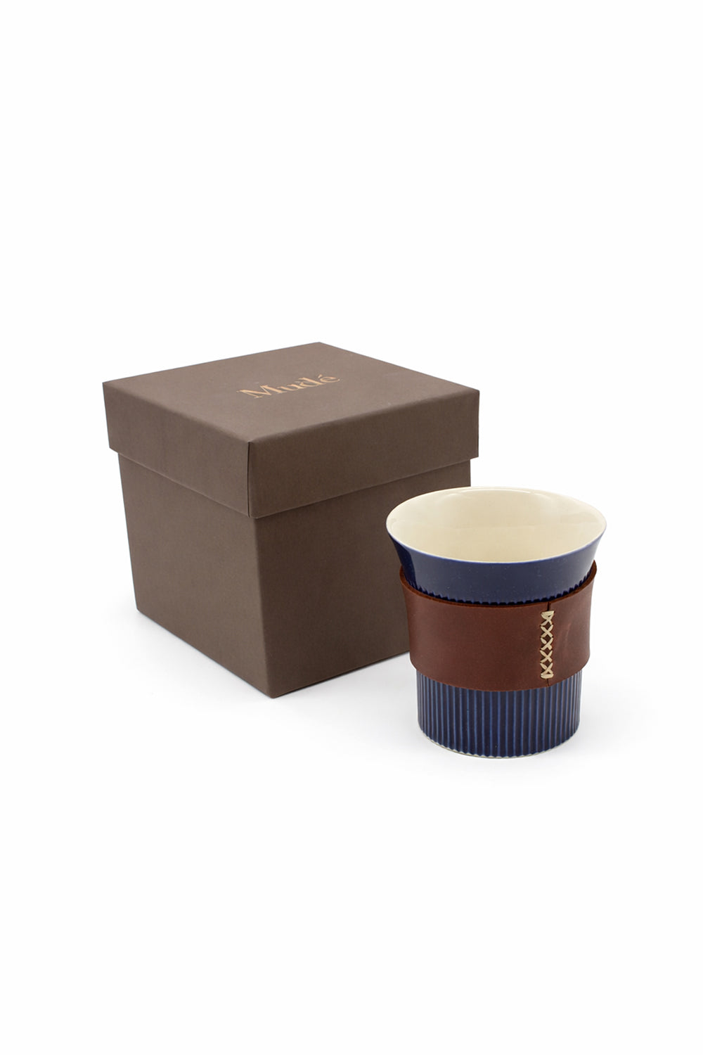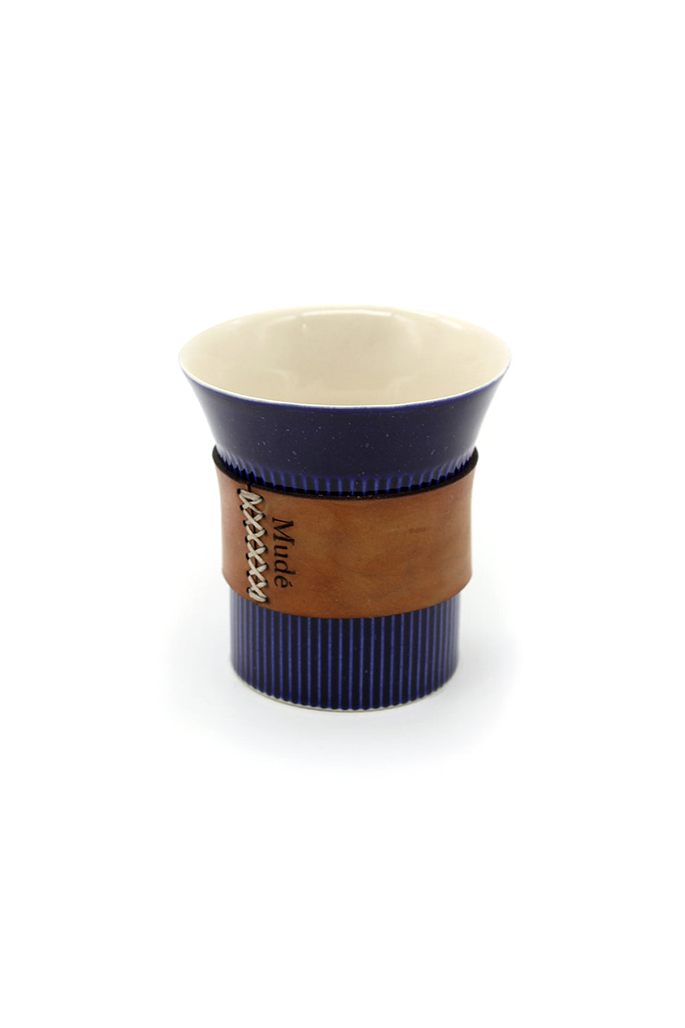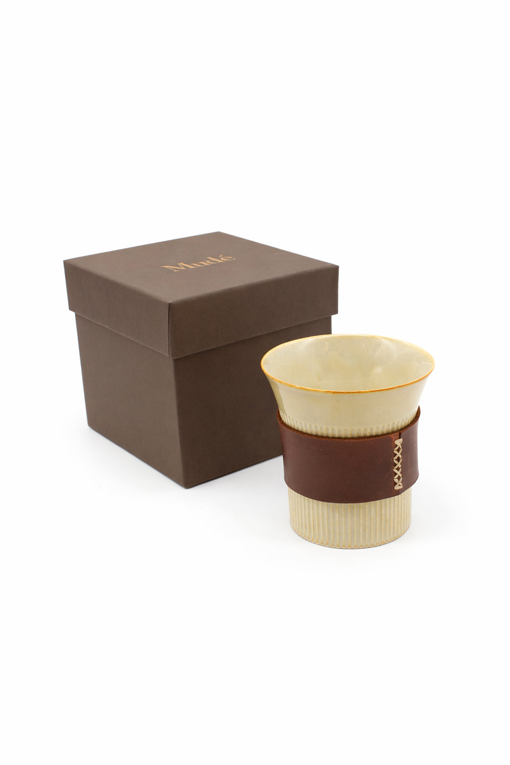 Fluted Stoneware Bardak – Deri Tutacaklı