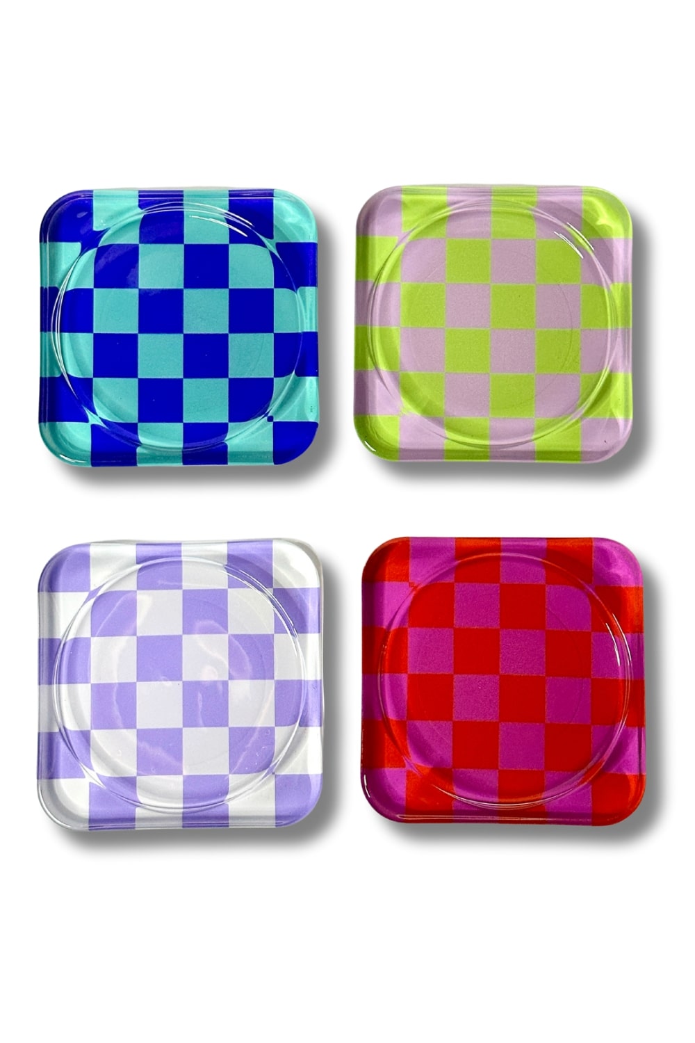 Retro Checkerboard Cam Bardak Altlığı 4'lü Set