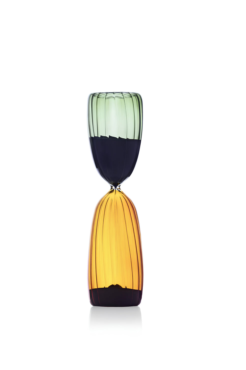 Times koleksiyonundan yeşil ve amber renk cam kum saati ( 15dk ).