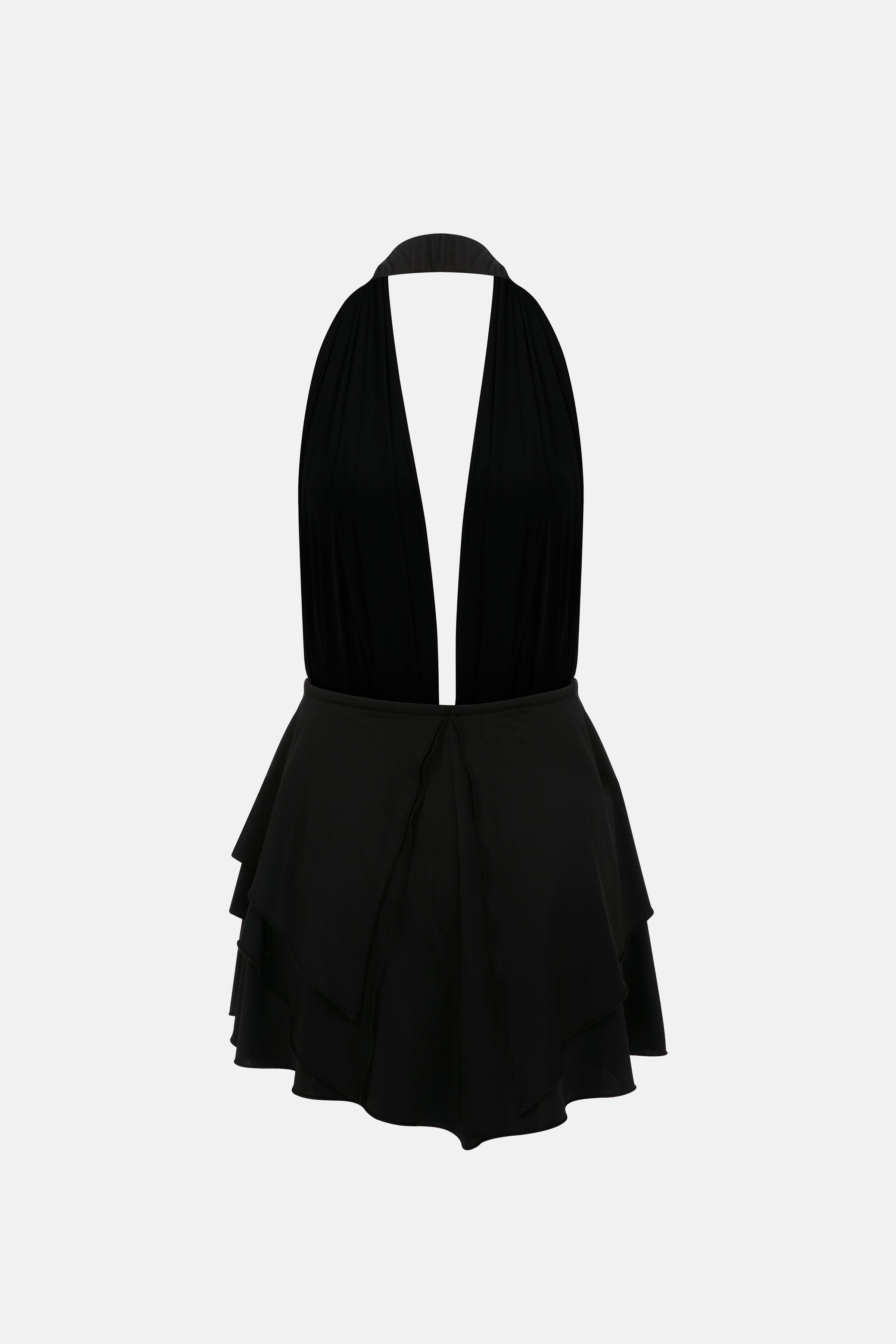 Boyundan gizli lastik detayı ile konforlu bir kullanım sunan bu mini elbise, kendinden jarse mayosu sayesinde ekstra rahatlık sağlar. Beli lastik formu vücuda uyumlu bir siluet oluştururken, parçalı mini etek tasarımı dinamik ve genç bir görünüm yaratır. Günlük stillerden sahil kombinlerine kadar pek çok ortamda rahatlıkla tercih edilebilir.