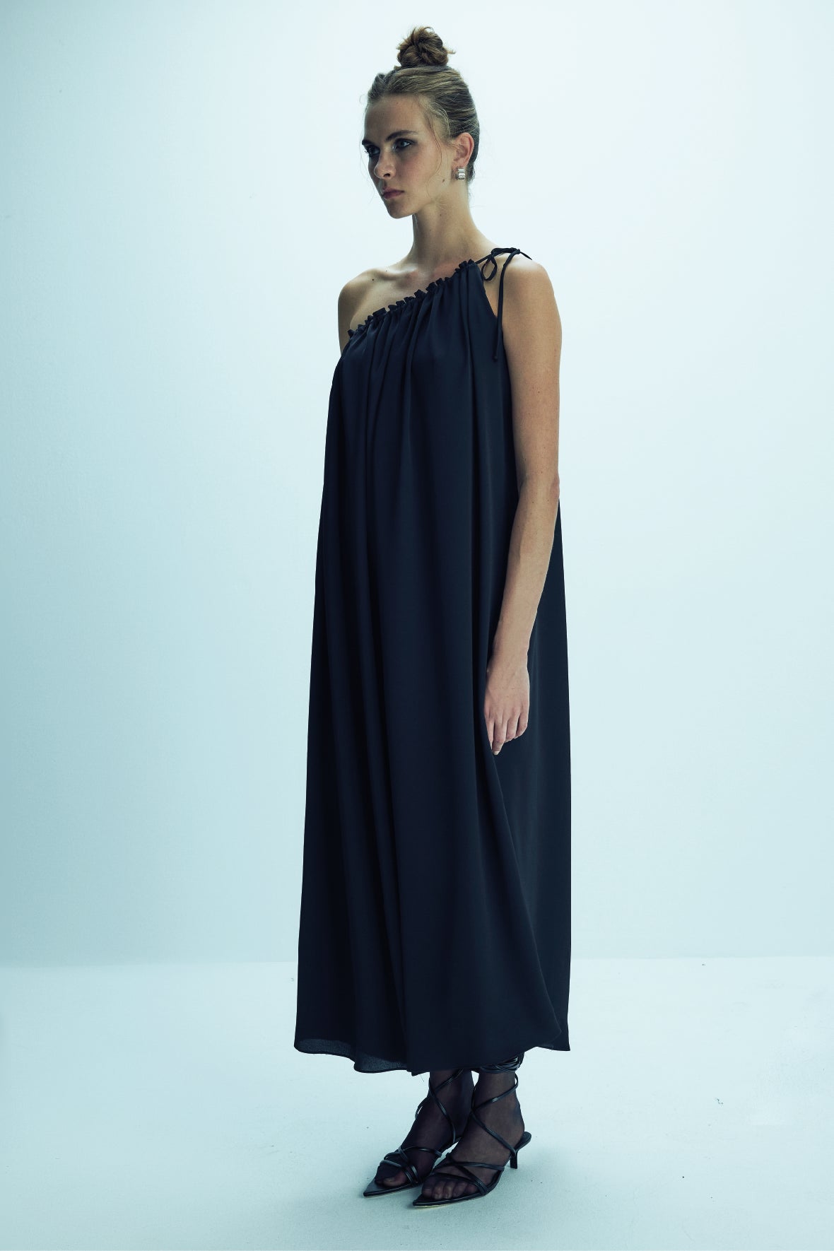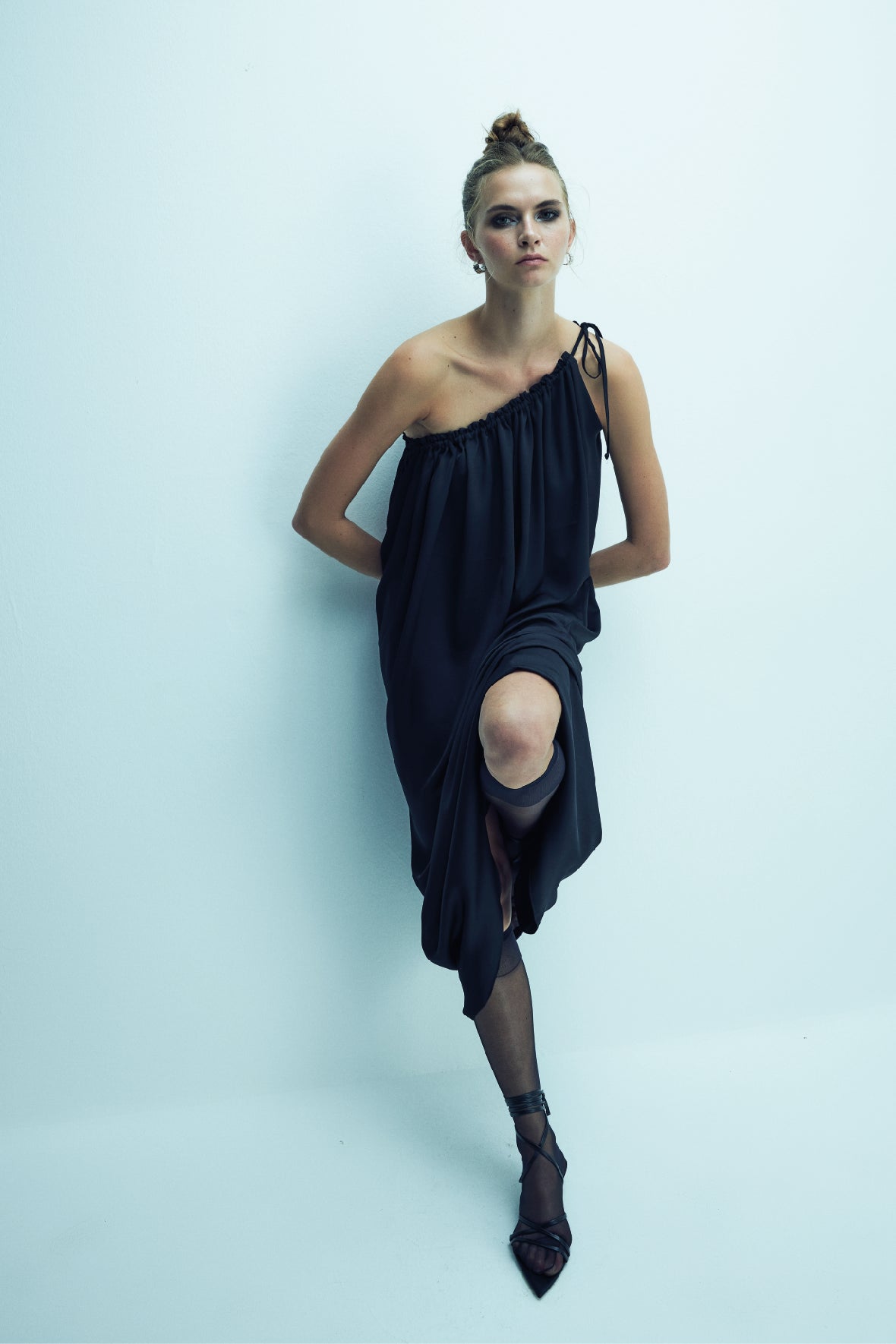 Chrissy Elbise, sofistike tasarımı ve lüks saten kumaşıyla öne çıkıyor. Tek omuzlu kesimi ve dökümlü yapısıyla zarafeti ve şıklığı bir araya getiriyor. Yanlarda yer alan gizli cepler, kullanışlılık sunarken elbisenin şıklığına zarif bir dokunuş ekliyor.