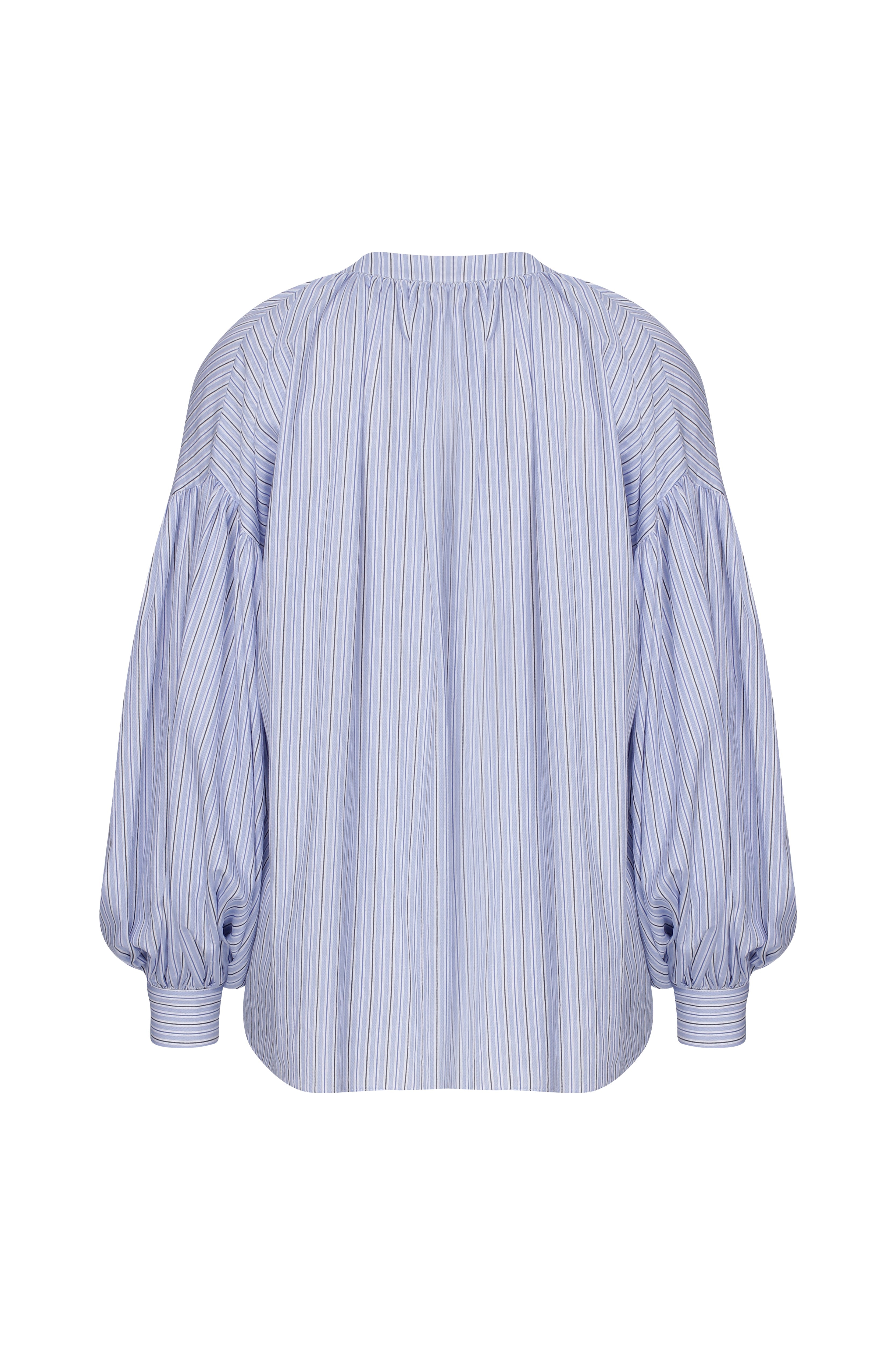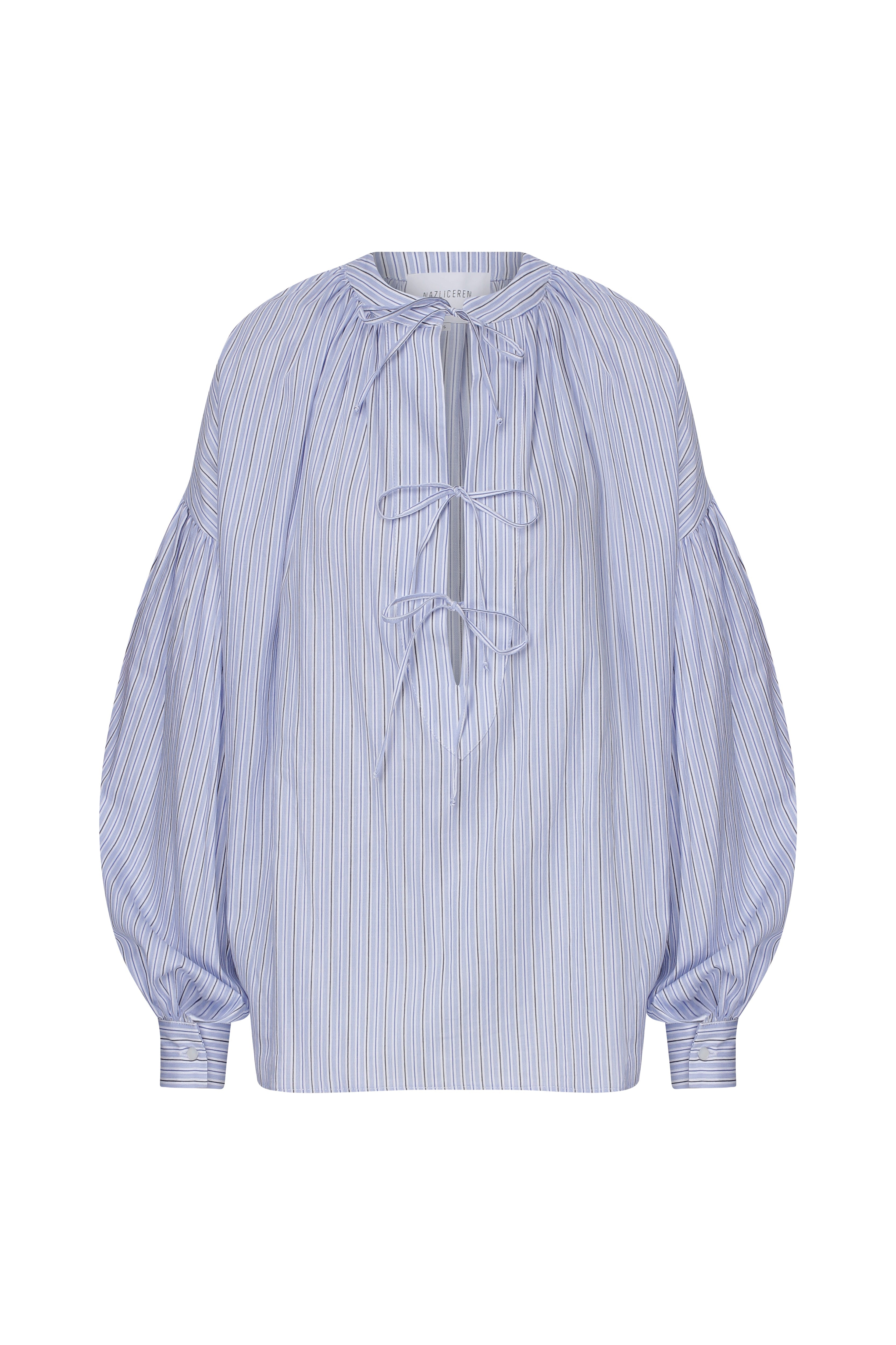 Eve Çizgili Koton Gömlek Blue