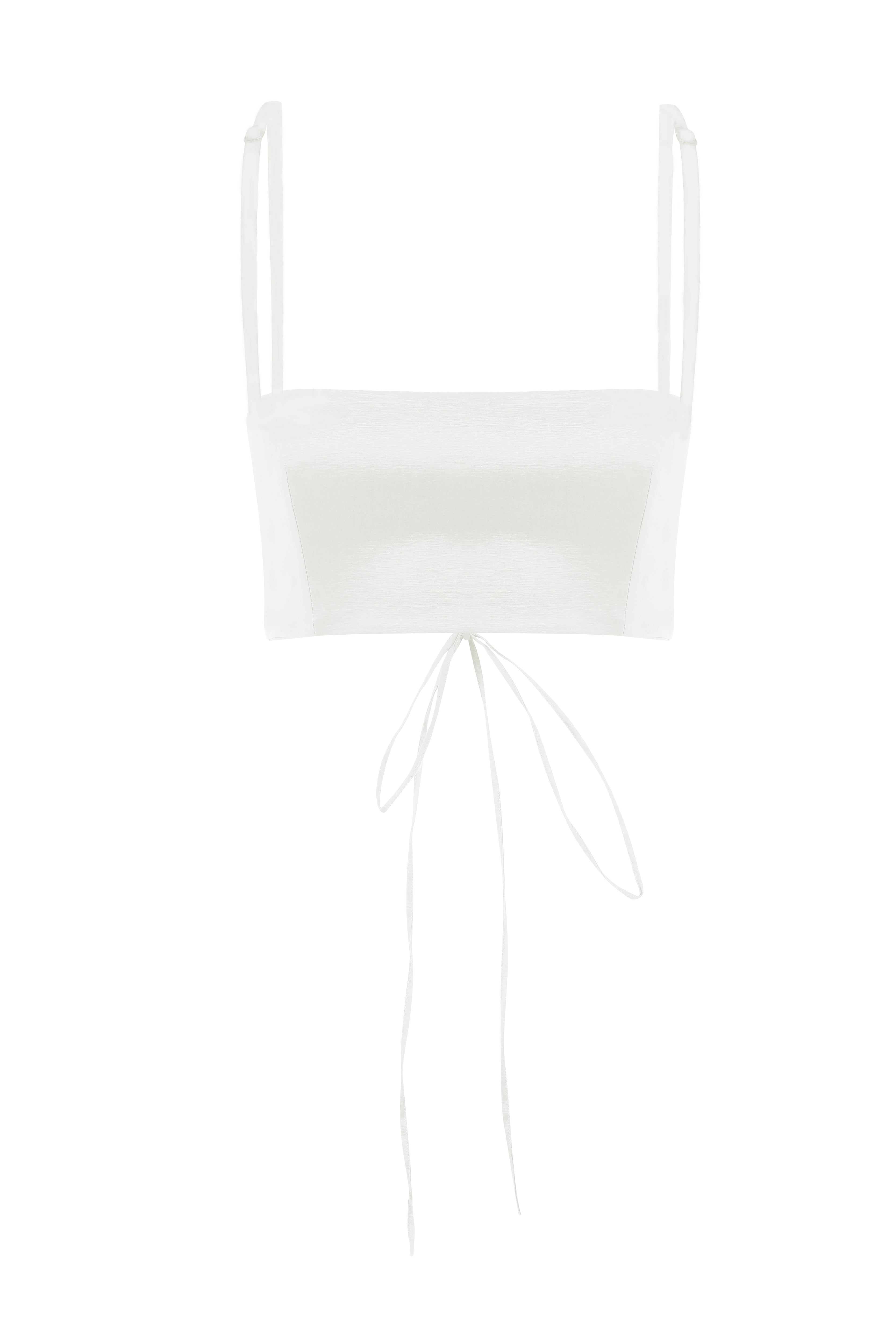 Marde etek ile kombinlenebilen Lalia Top, krep kumaştan üretilmiştir. Astar olarak kendi kumaşı kullanılmıştır. Arka kısmının ayarlanabilirdir.
