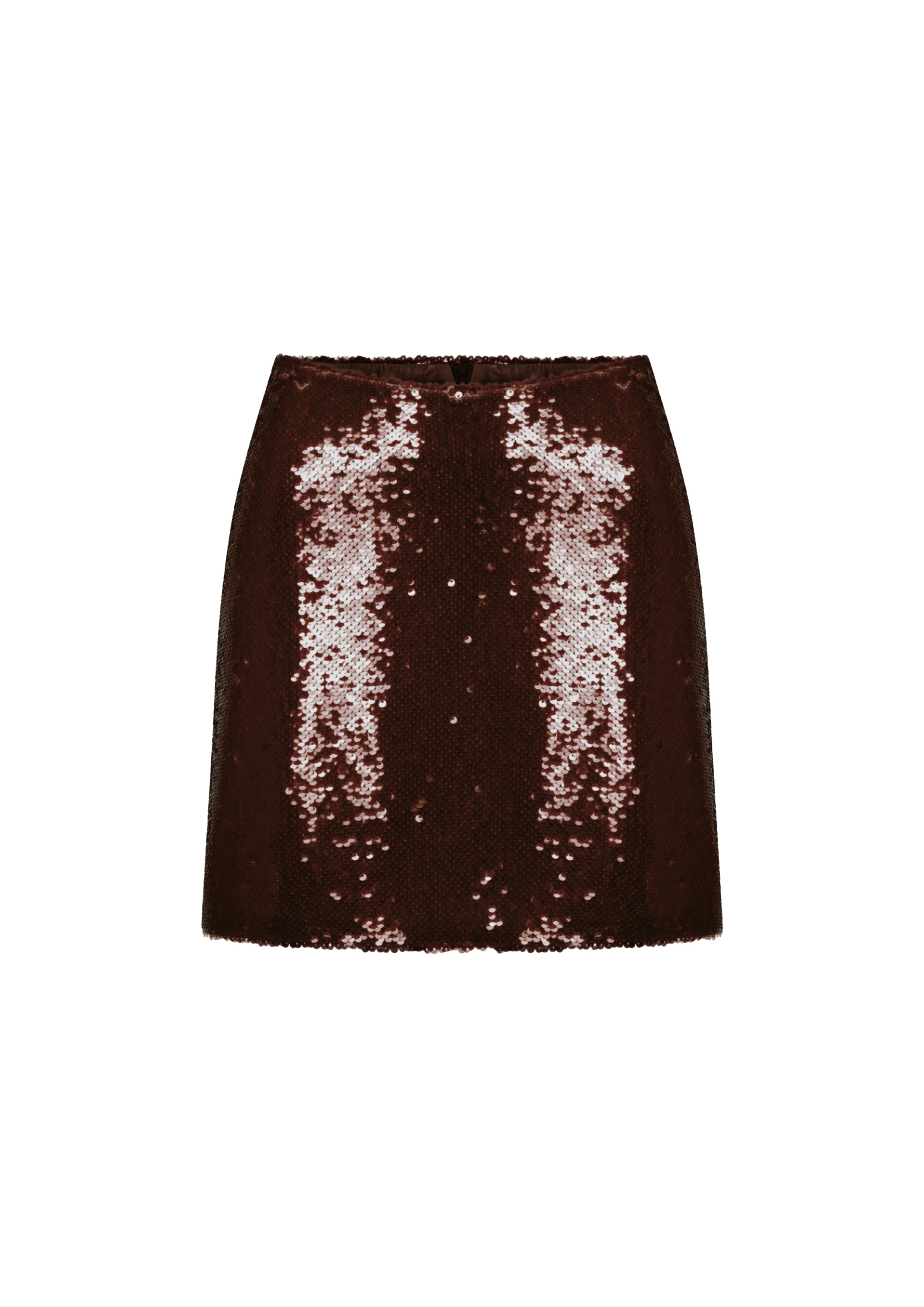 Marde Payetli Mini Etek, koyu bordo tonu ve göz alıcı payet dokusuyla şıklığı ön plana çıkarır. Işıltılı yüzeyiyle özel davetler, kutlamalar ve gece kombinleri için mükemmel bir seçimdir. Saten astarı sayesinde cilde yumuşak bir temas sağlar ve konforlu bir kullanım sunar. Düz kesimiyle vücudu zarifçe sararken, ışıltılı dokusu her adımda dikkat çeker. Koleksiyonda yer alan Viona Cape ile birlikte kombinlendiğinde sofistike bir takım görünümü oluşturur.