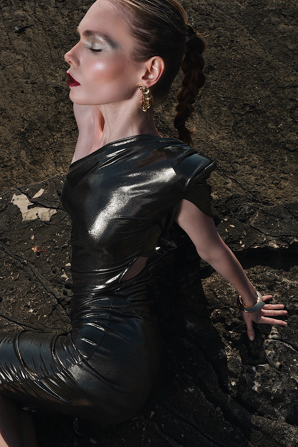 Ürün Özellikleri: Sırt dekolteli tek kollu yandan yırtmaçlı asimetrik etekli sırt dekolteli ,omuzu vatkalı midi boy elbise. Ürün astarlıdır.