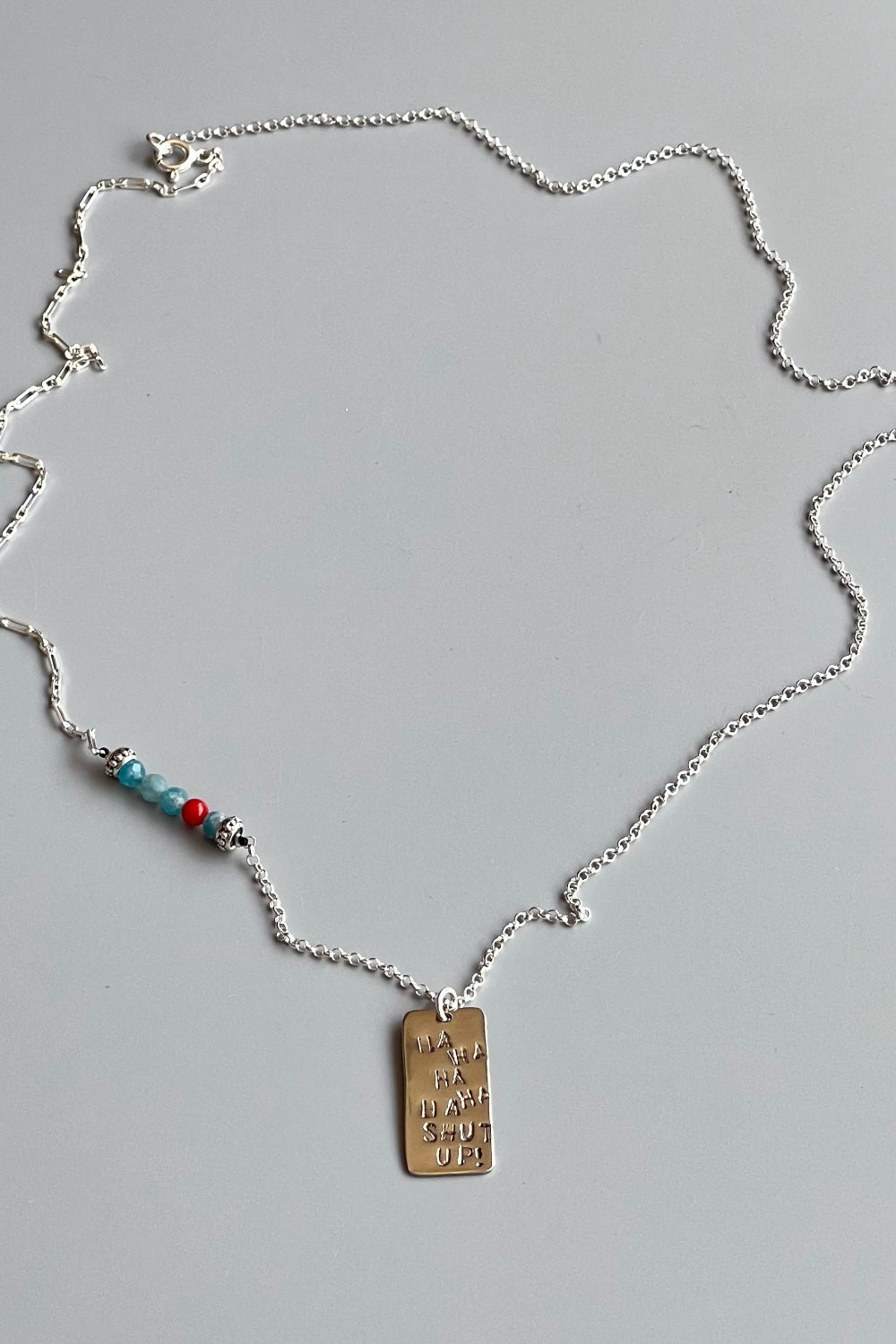Haha Shut Up! – Yazılı Taşlı Unisex Gümüş Kolye