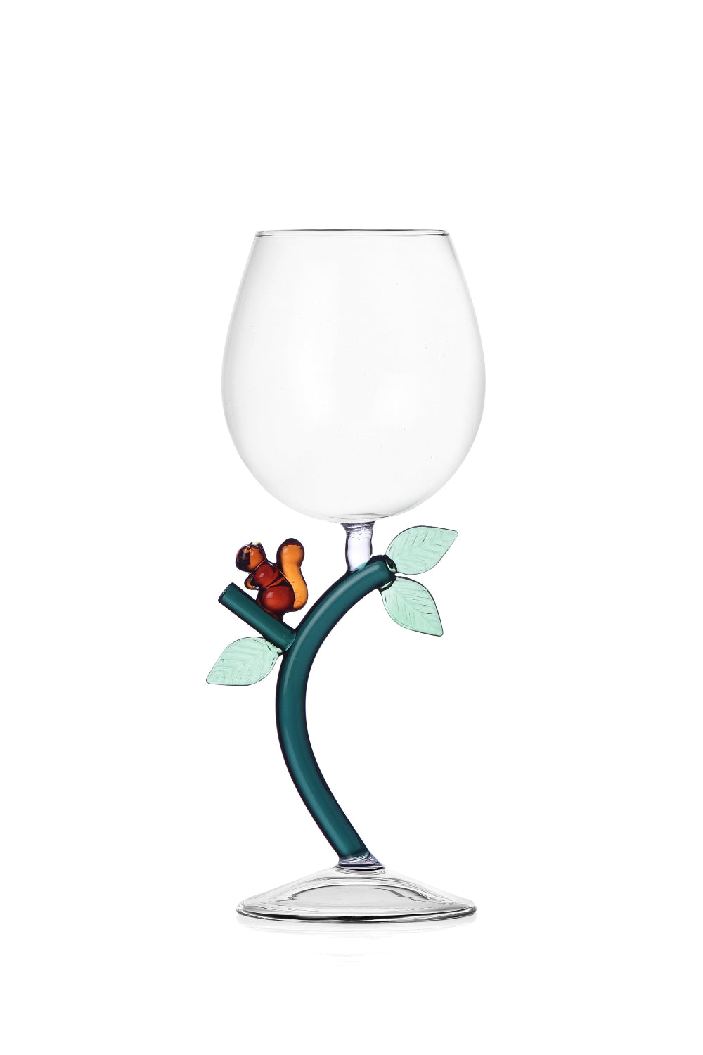 El yapımı borosilikat camdan üretilen bu zarif bardak, sapında yer alan sincap figürü ve camdan yaprak detaylarıyla Animal Farm koleksiyonunun doğaya duyarlı ve hikâye anlatan tasarım yaklaşımını yansıtır. Estetik ve mizahi unsurları bir araya getiren bu parça, her kullanımda masa düzenine özgün bir karakter kazandırır.