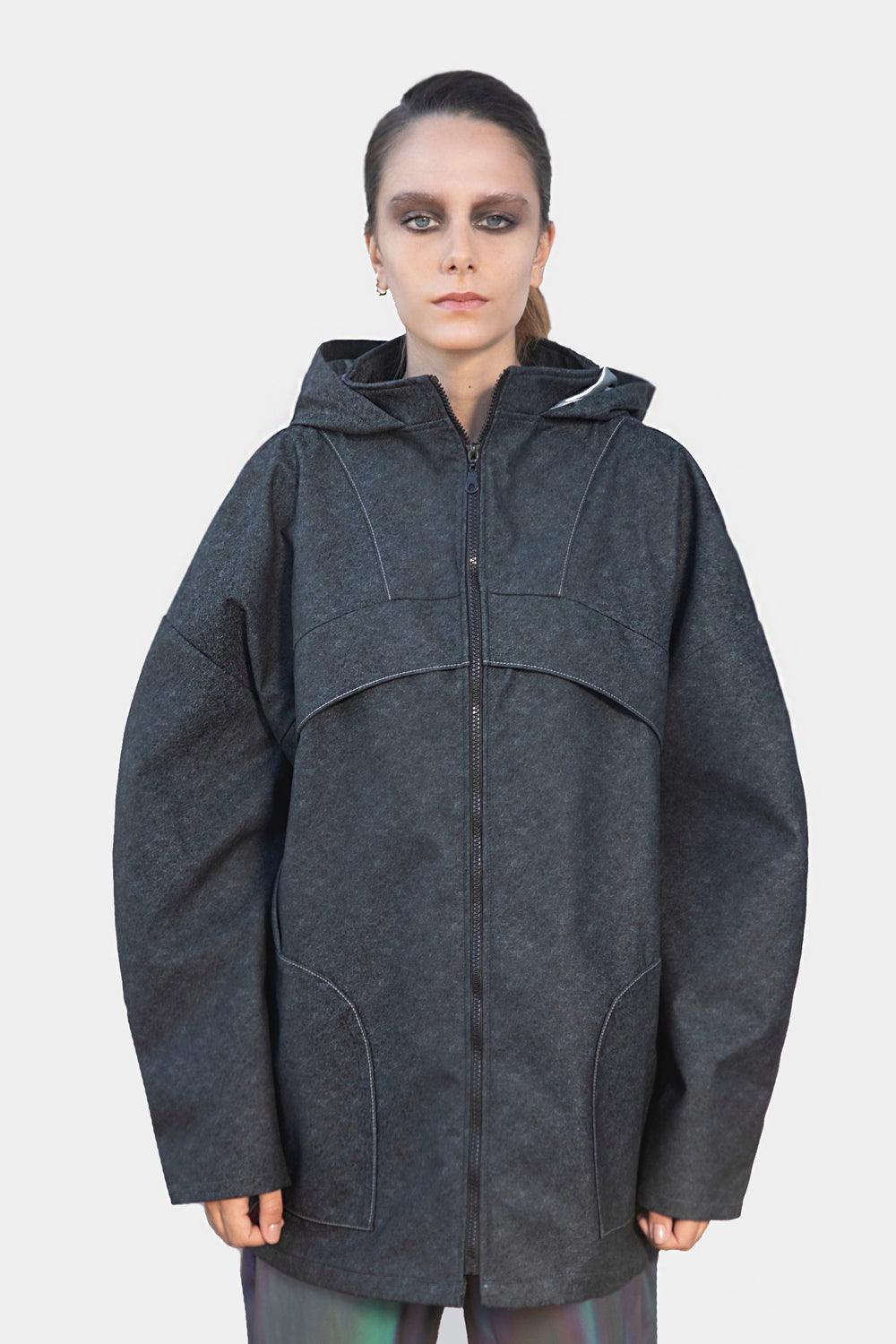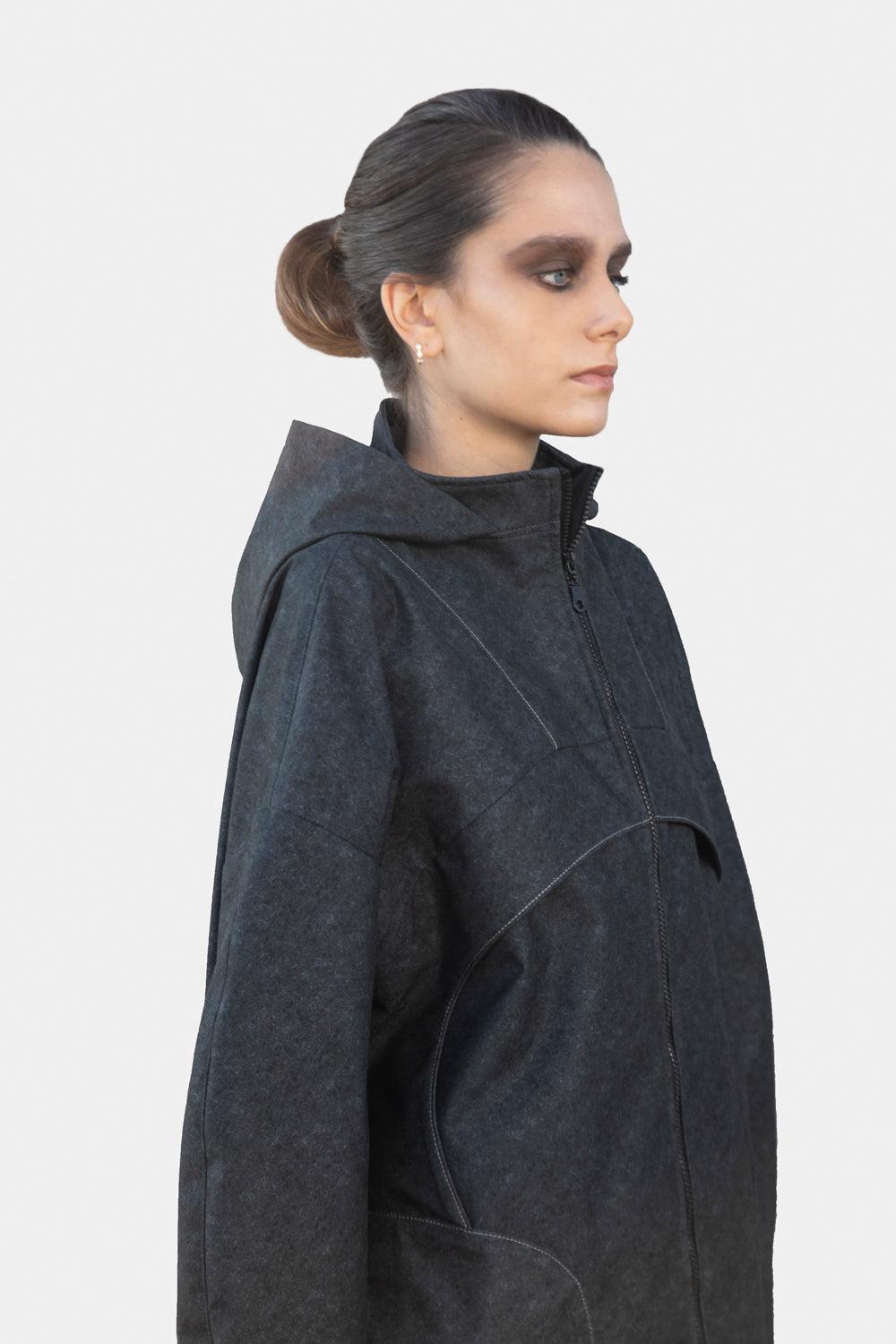 Isıtıcı materyalle kaplı oversize yağmurluk.