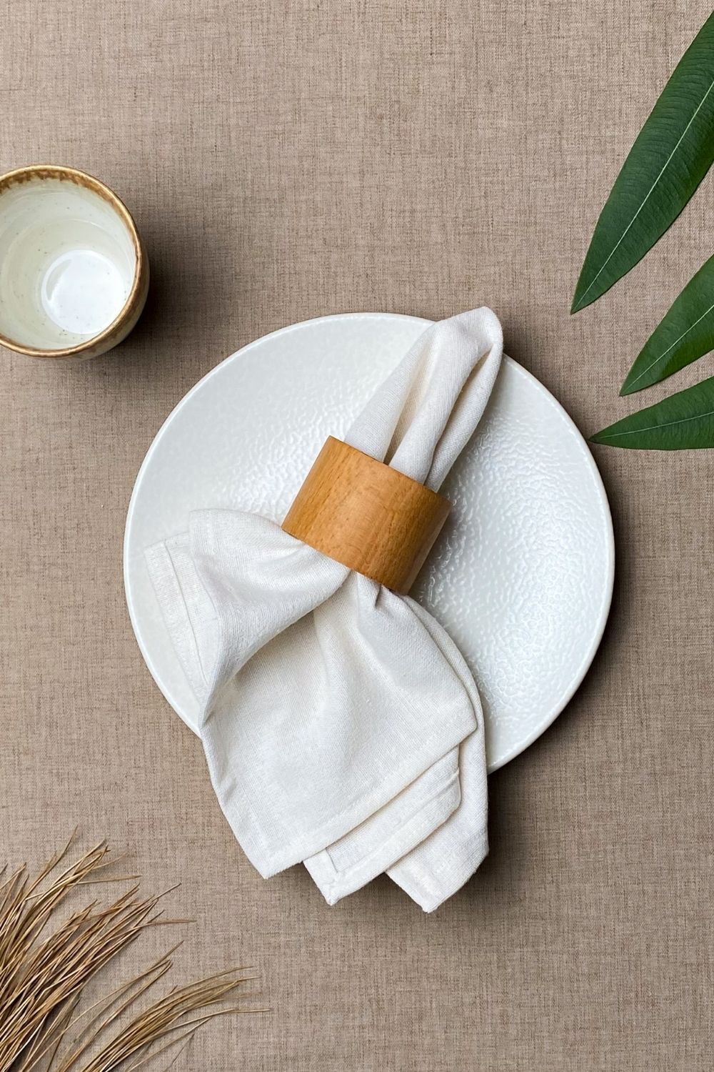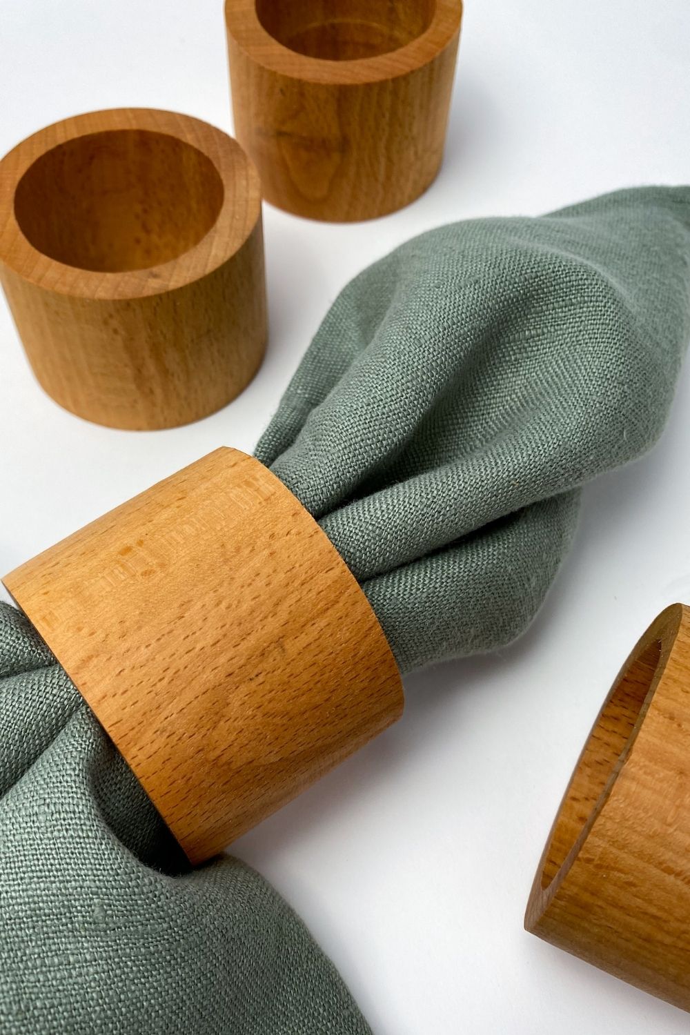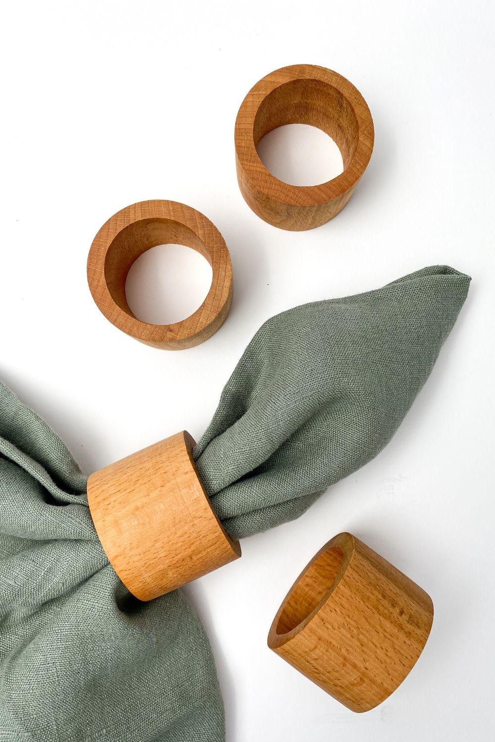 El işçiliği ile üretilmiş doğal ahşap 4'lü peçete halkası.