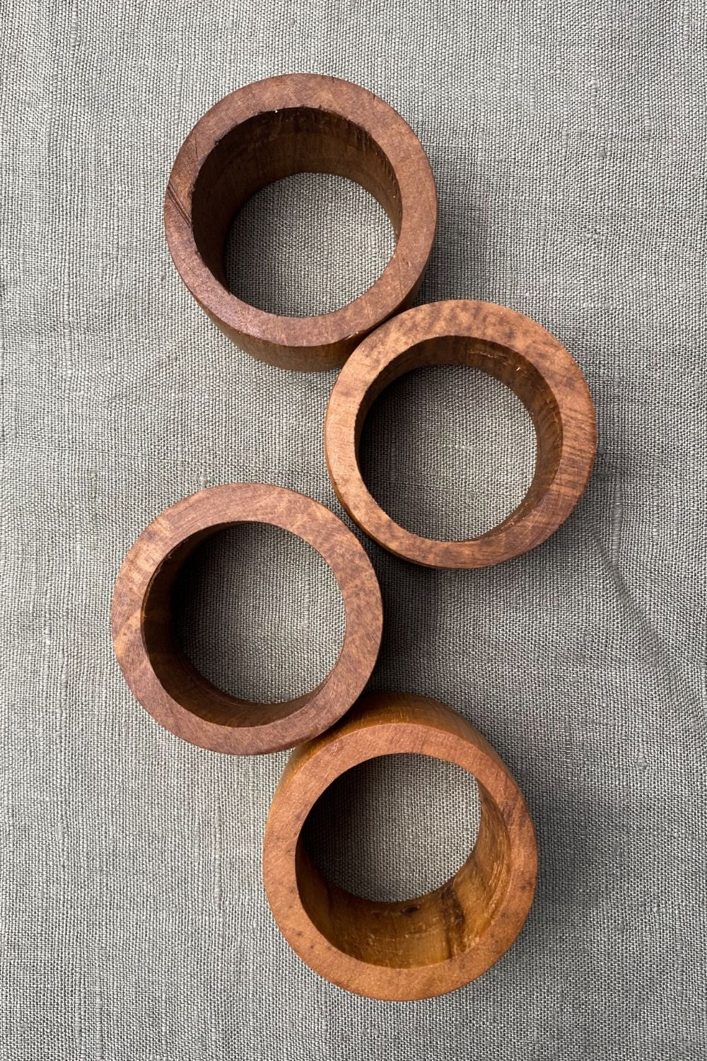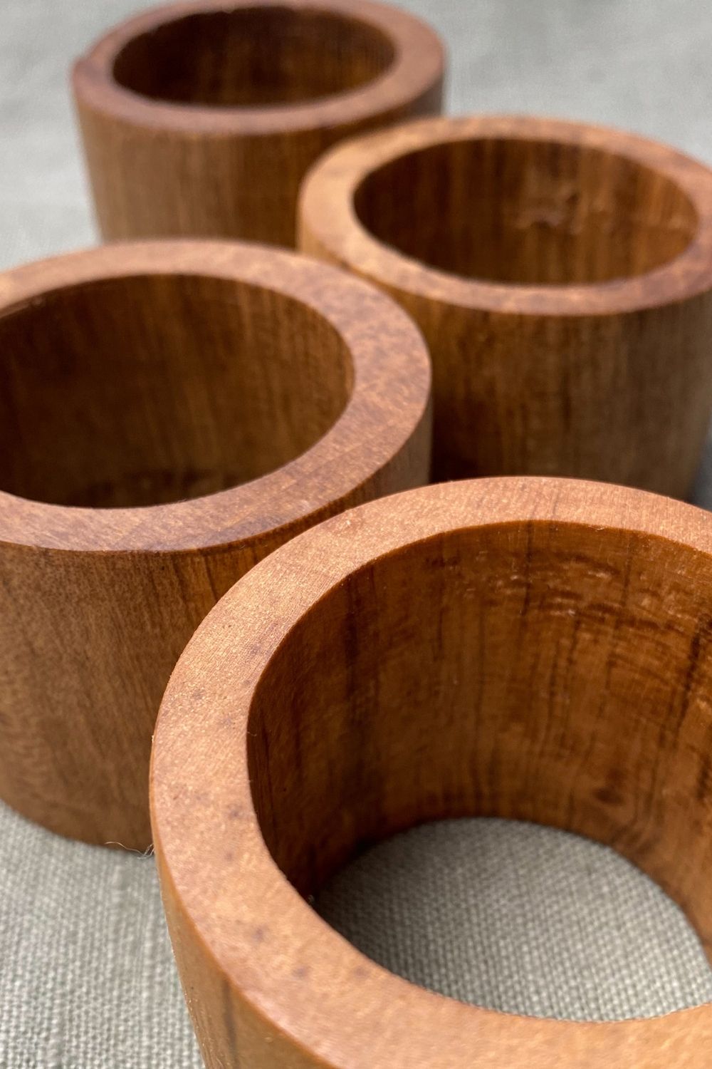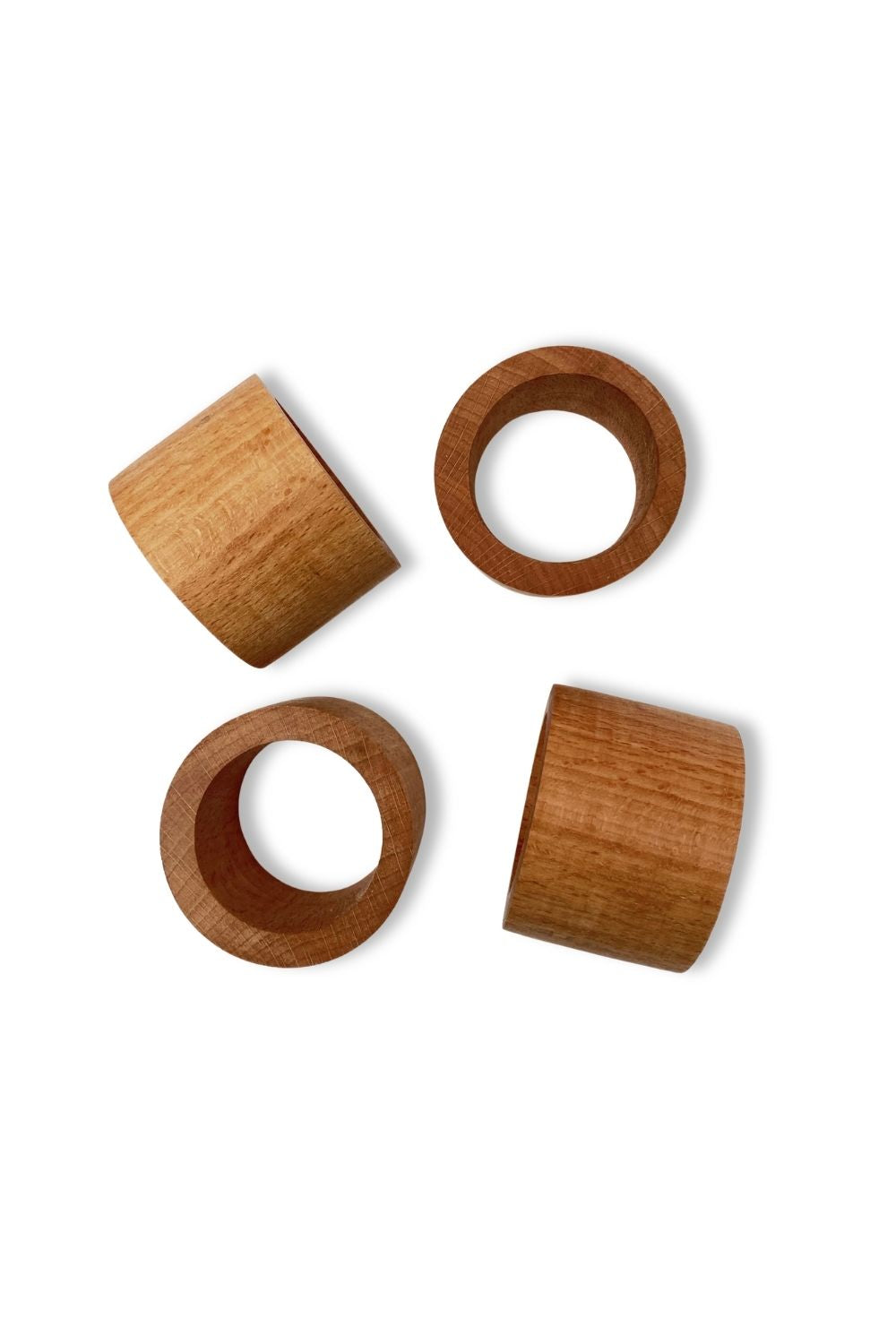 El işçiliği ile üretilmiş doğal ahşap 4'lü peçete halkası.