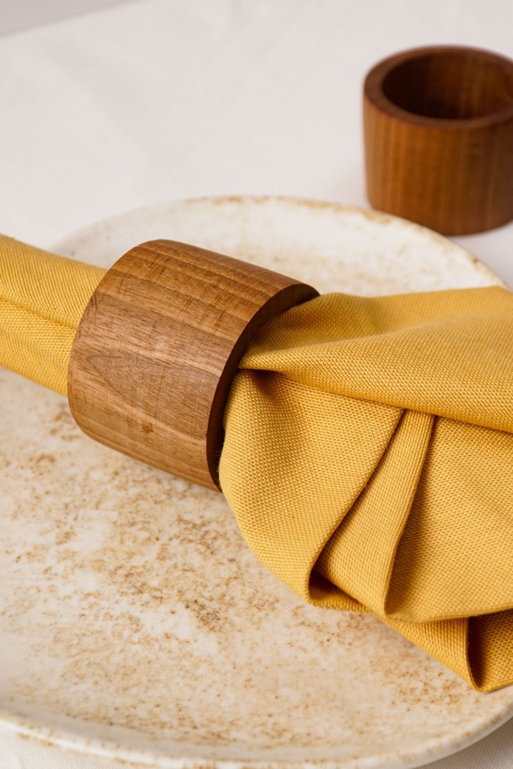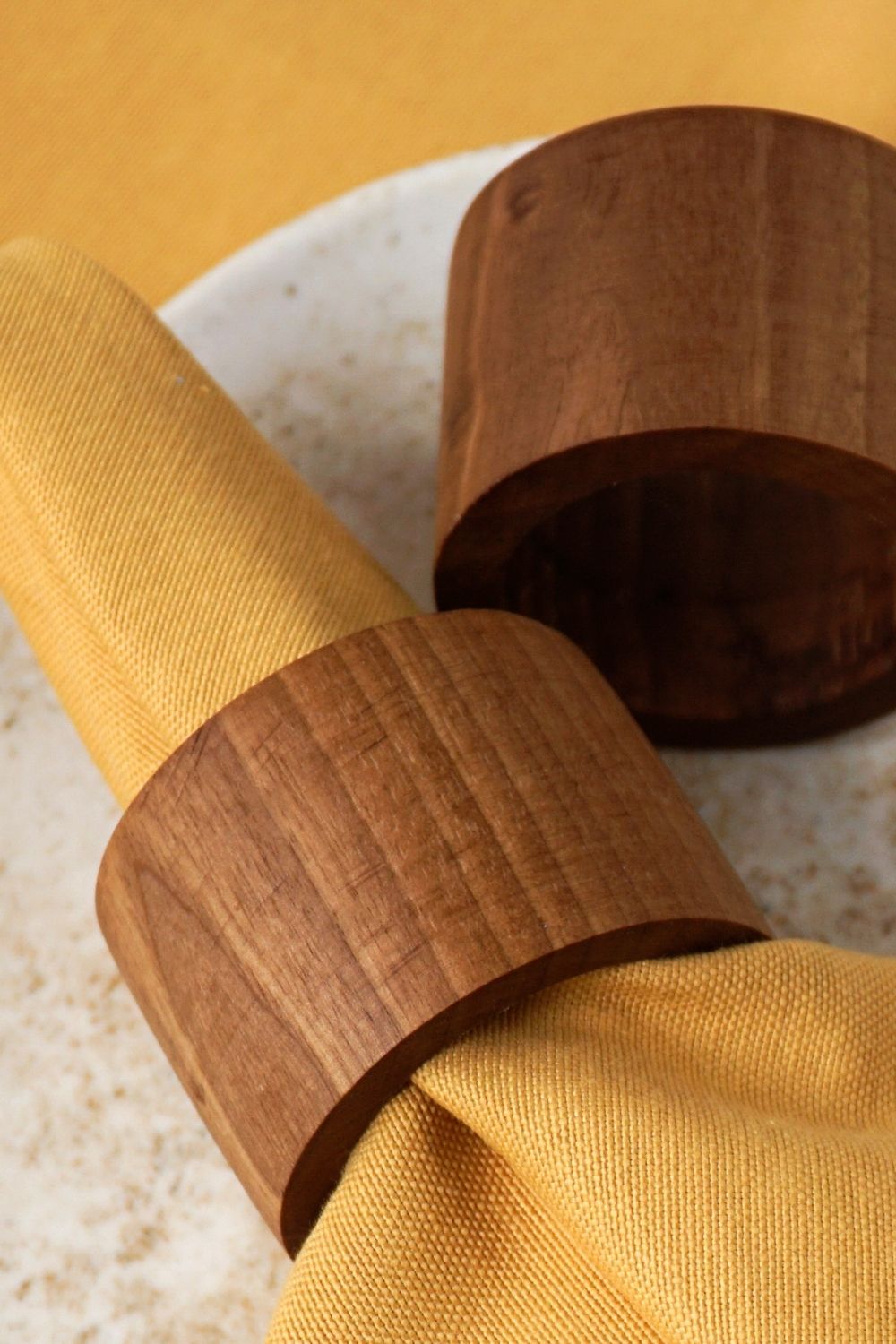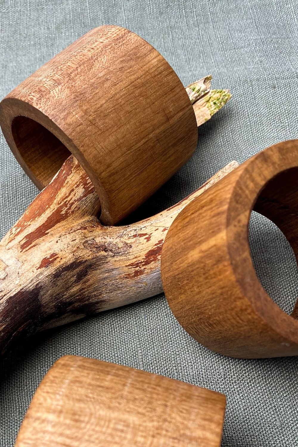 El işçiliği ile üretilmiş doğal ahşap 4'lü peçete halkası.