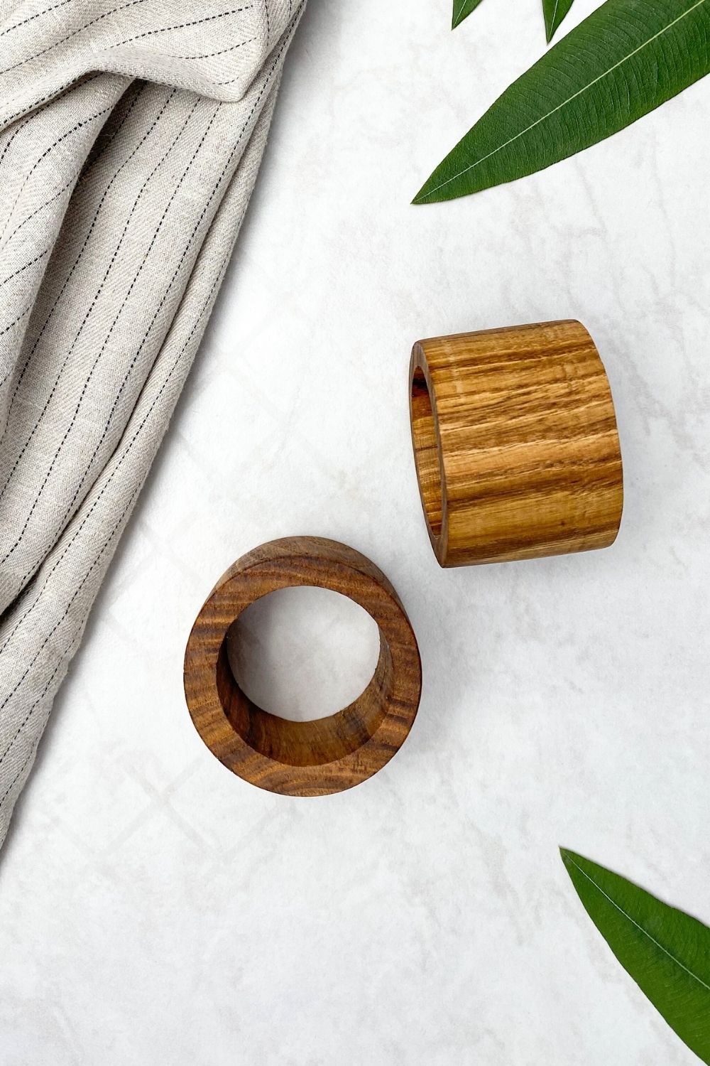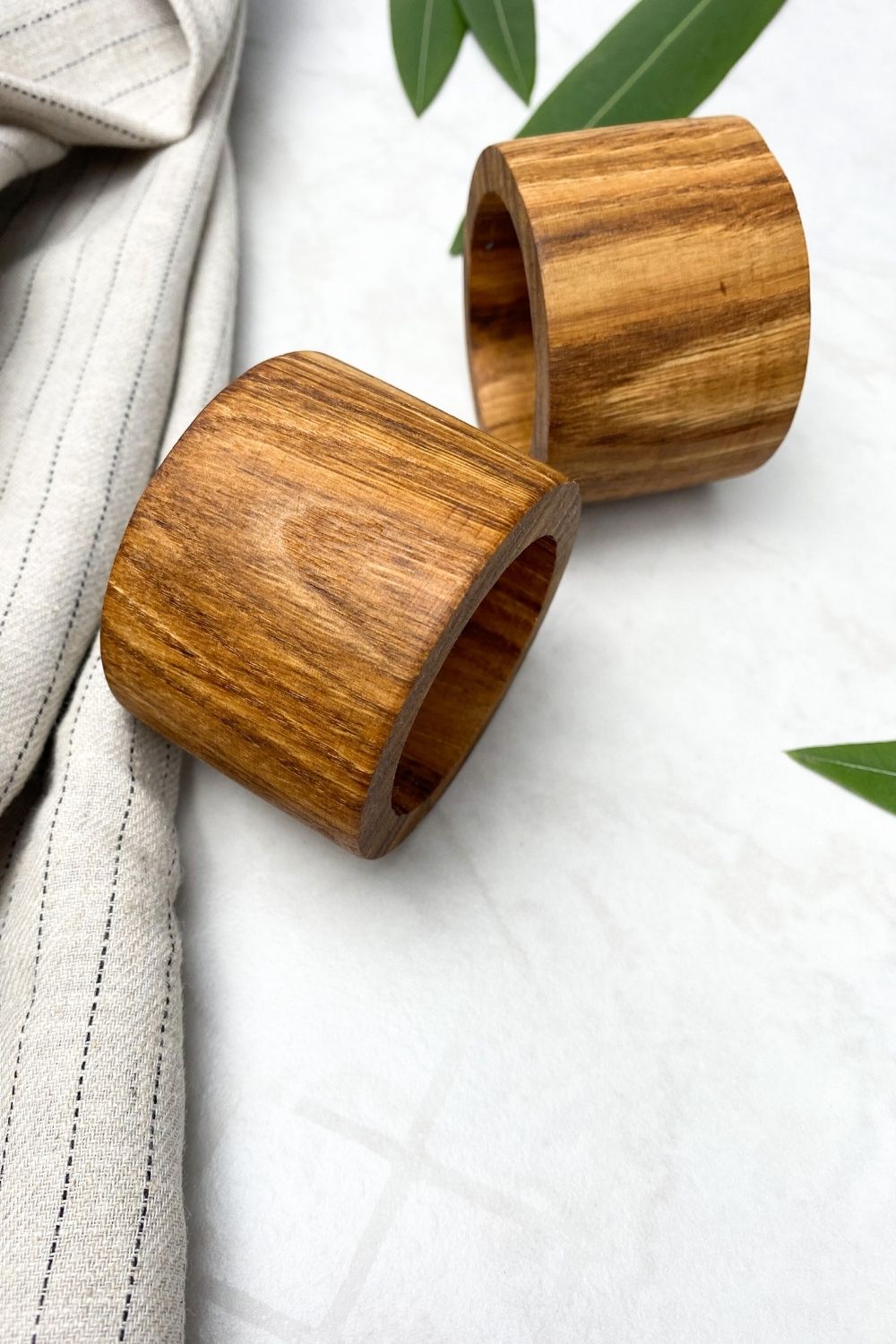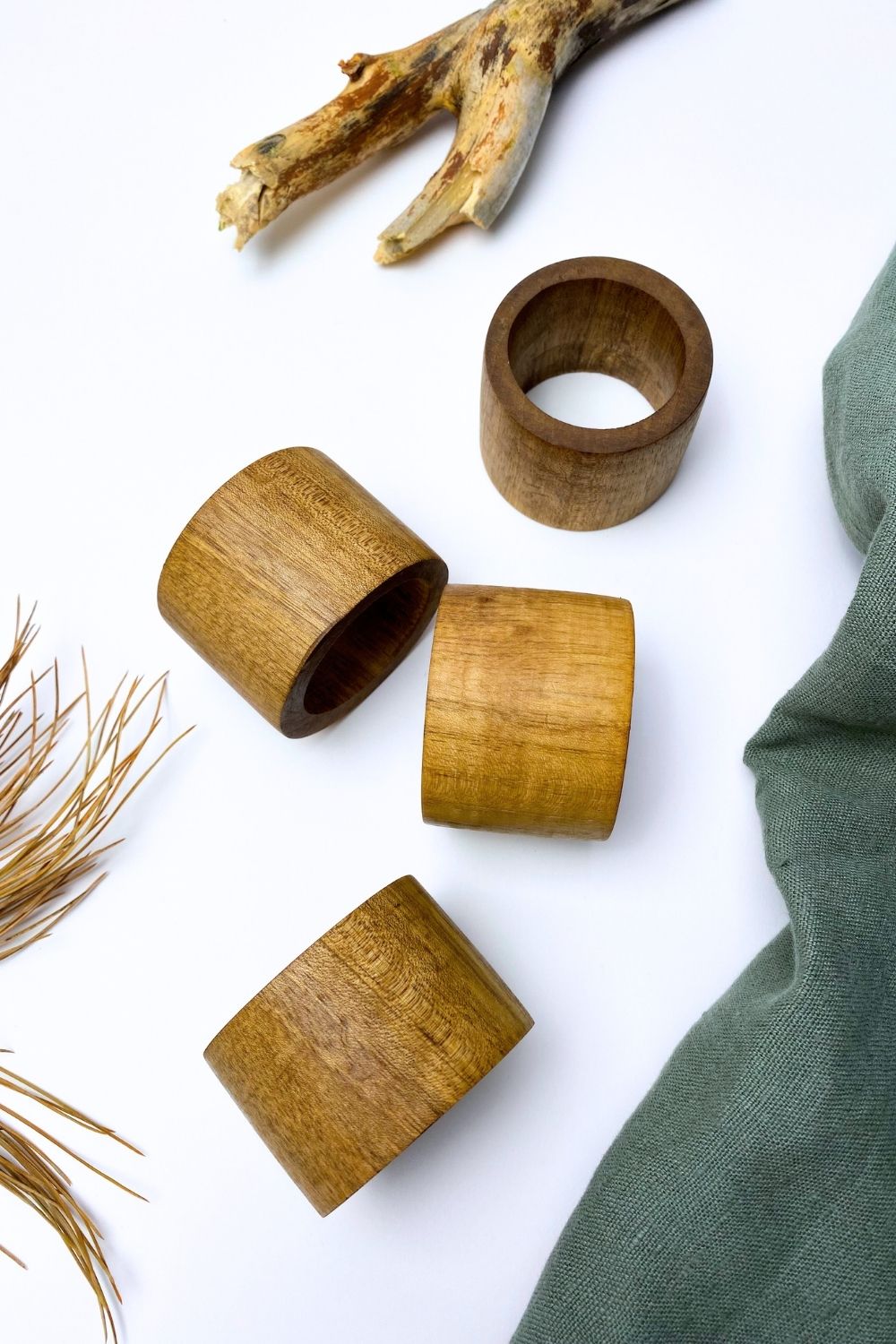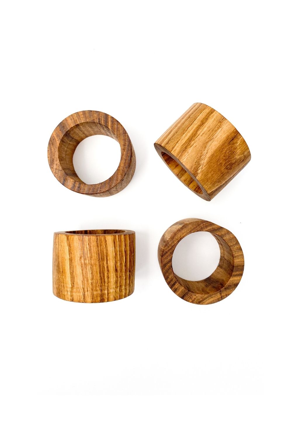 El işçiliği ile üretilmiş doğal ahşap 4'lü peçete halkası.