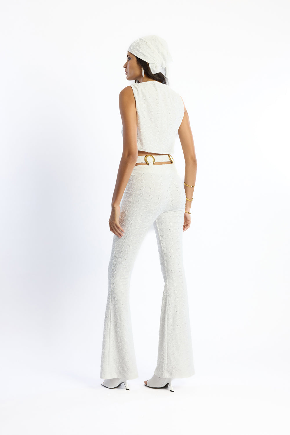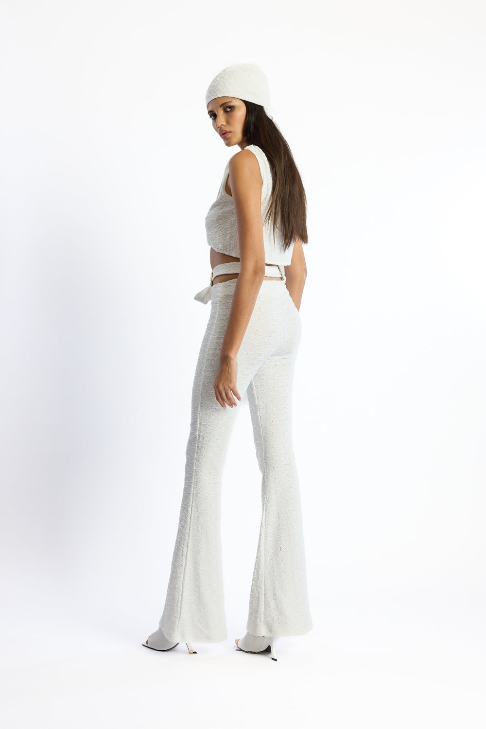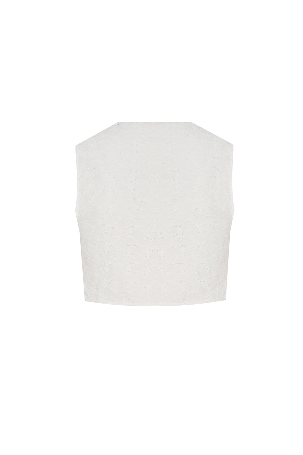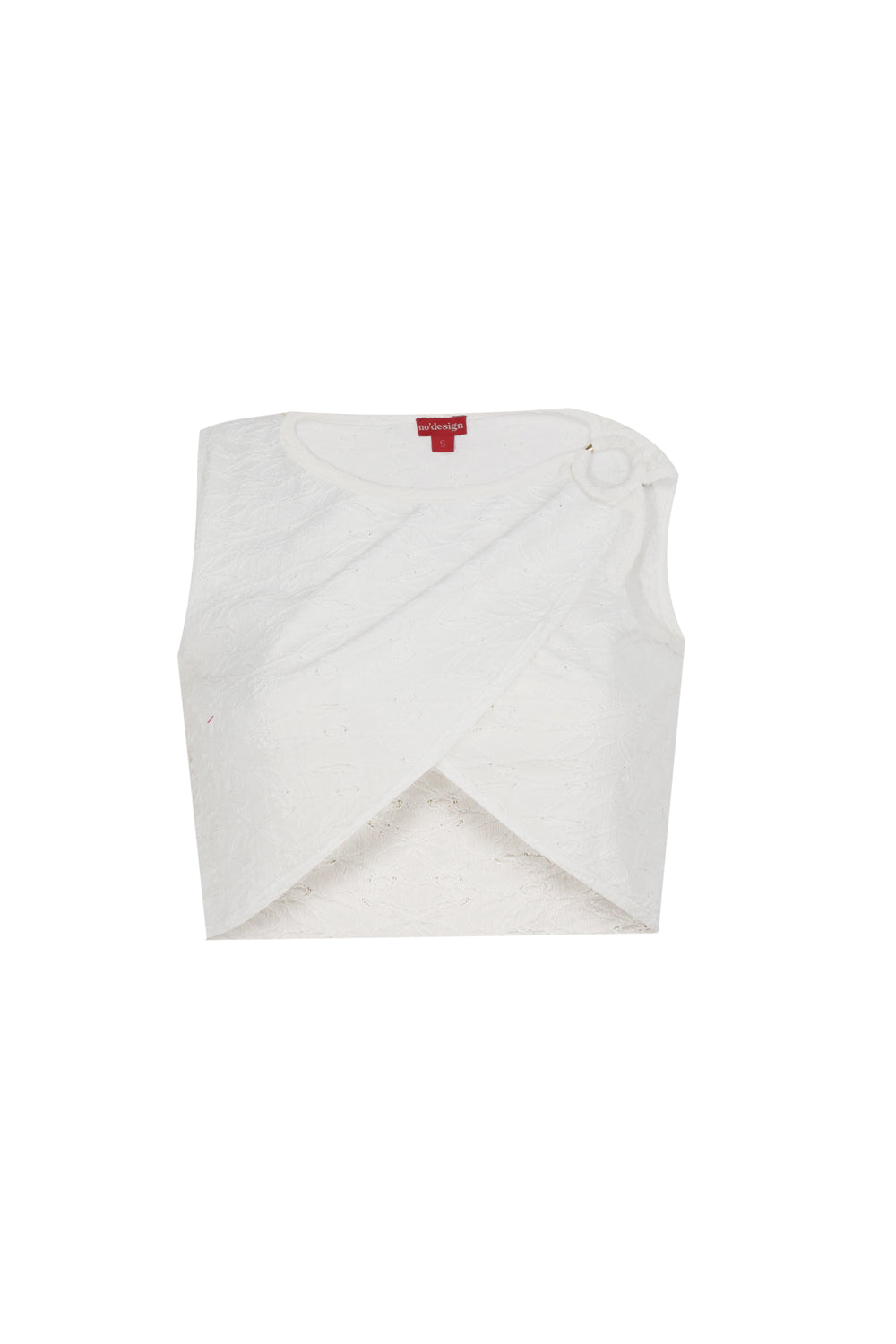 Modern çizgilerle yorumlanan bu crop top, çapraz kesimi ve ön kısmındaki altın kaplama toka detayıyla dikkat çekiyor. Dokusuyla yaz aylarına uygun hafiflik sunarken, zarif siluetiyle her kombine sofistike bir hava katıyor.• Altın kaplama tokalı çapraz kesim• Hafif, yazlık kumaş• Şık ve günlük kombinler için ideal