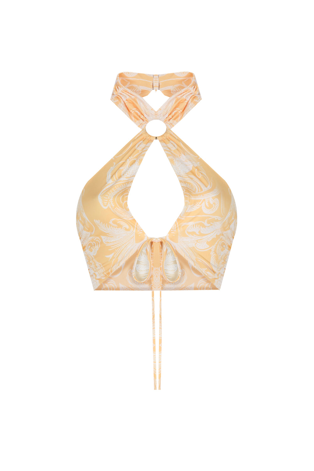 Nova büstiyer, boyundan bağlamalı kesimi ve göğüs ortasındaki zarif açıklıkla feminen şıklığı yansıtır. Yumuşak dokulu kumaşı sayesinde gün boyu konfor sunar. Sade ama dikkat çekici bir parça.