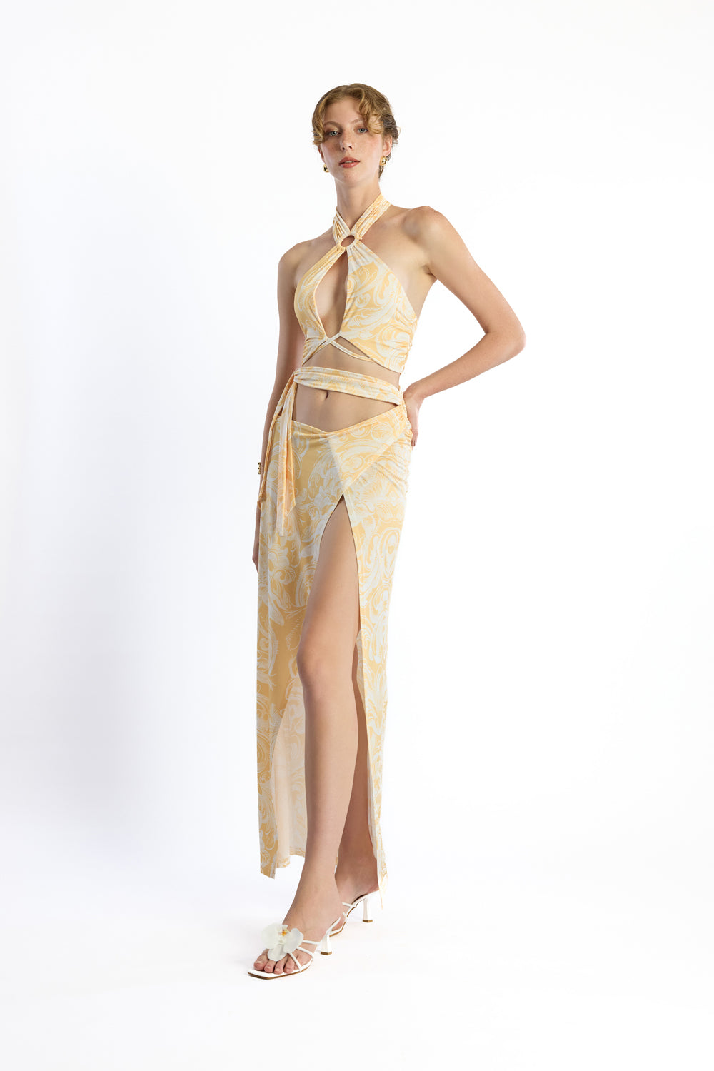 • Boyundan bağlamalı tasarım• Ön göğüste dekolte detayı• Hafif, yazlık kumaş• Glide Etek ile şık uyum