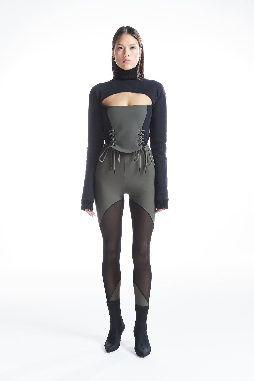 Transparan Detaylı Asimetrik Kesim Lastik Paça Tayt