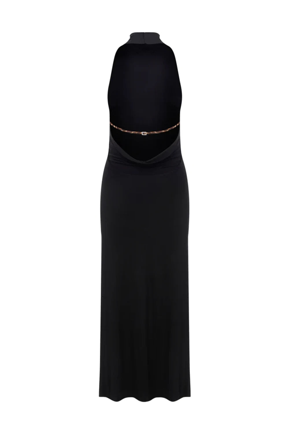 - Sırt dekolteli ve taş toka detaylı elbise.