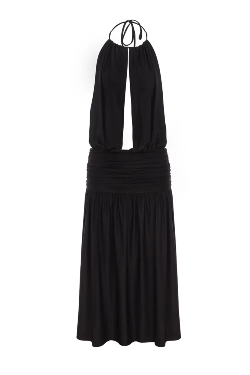 - Sırt dekolteli, boyundan ve straplez bağlamalı çift kullanımlı elbise.