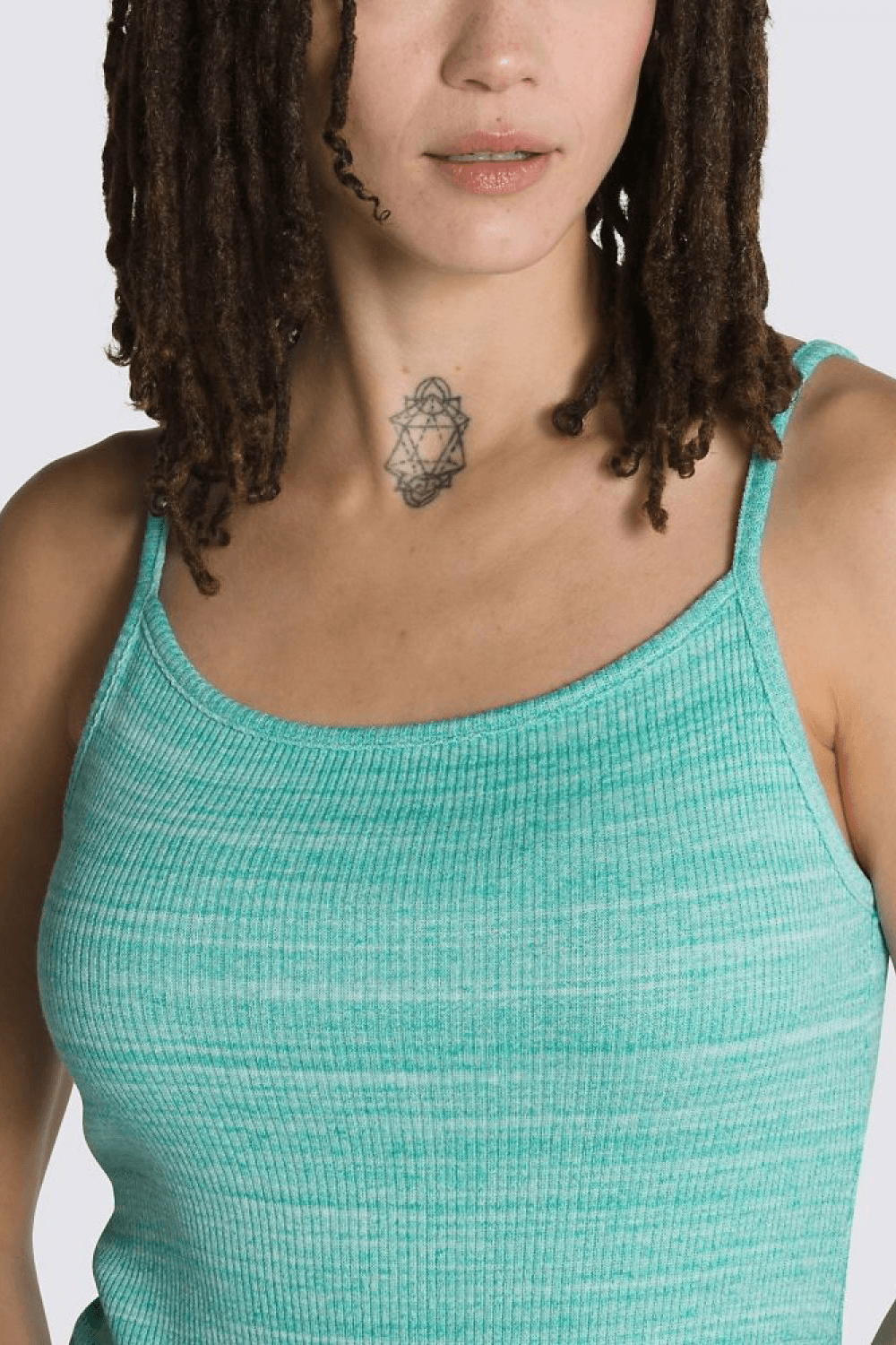 Ayarlanabilir ince askılı, sırt dikişi detaylarına sahip olan ve benzersiz bir görünüme katkıda bulunan bir rib örgü etek elbise modelidir.
