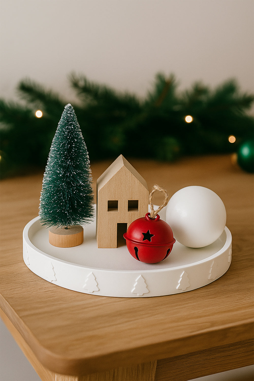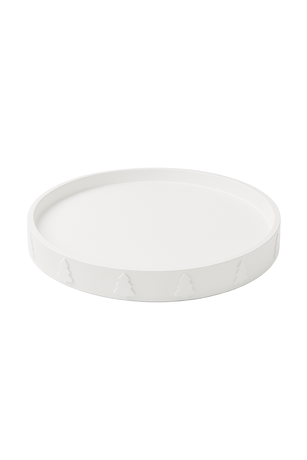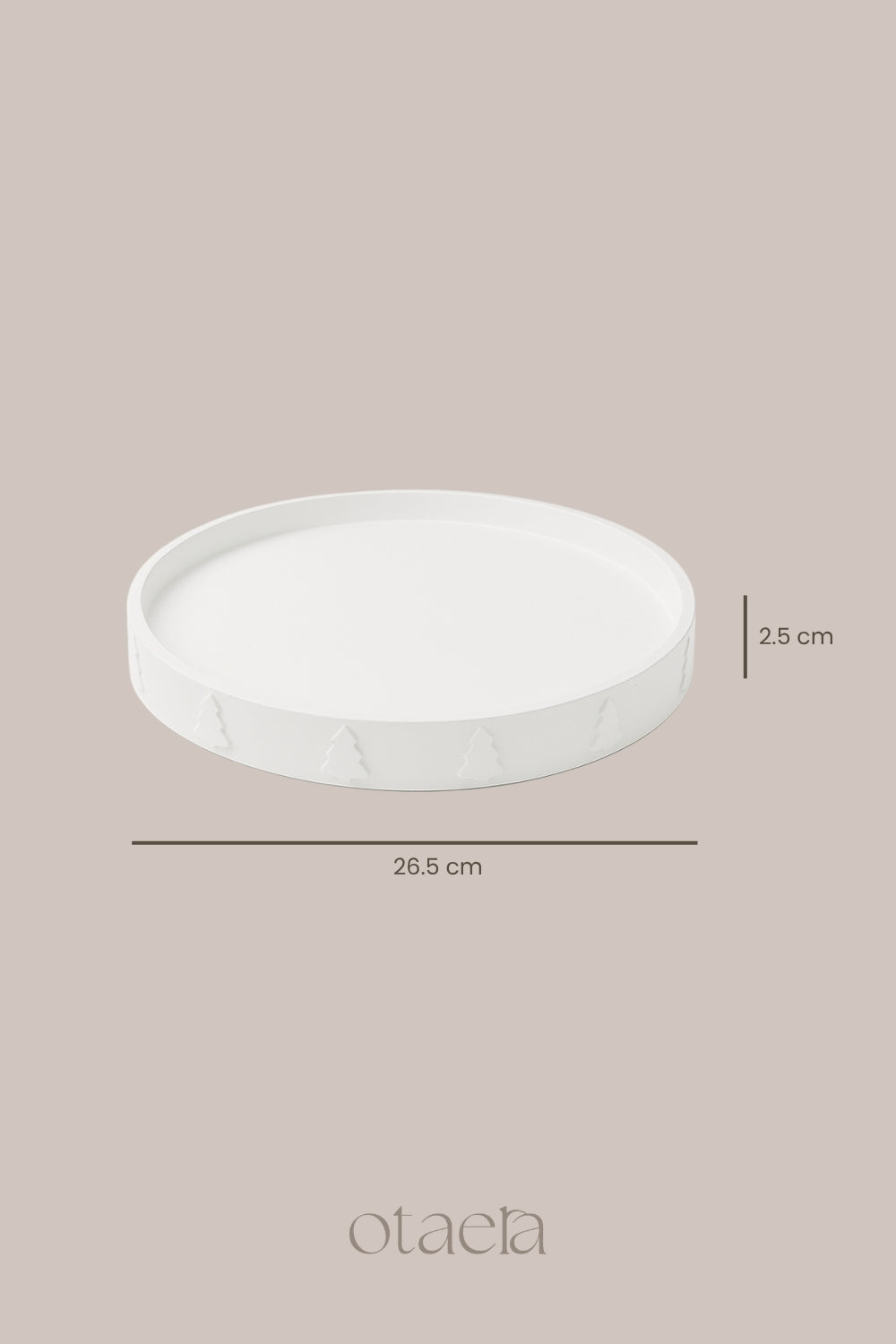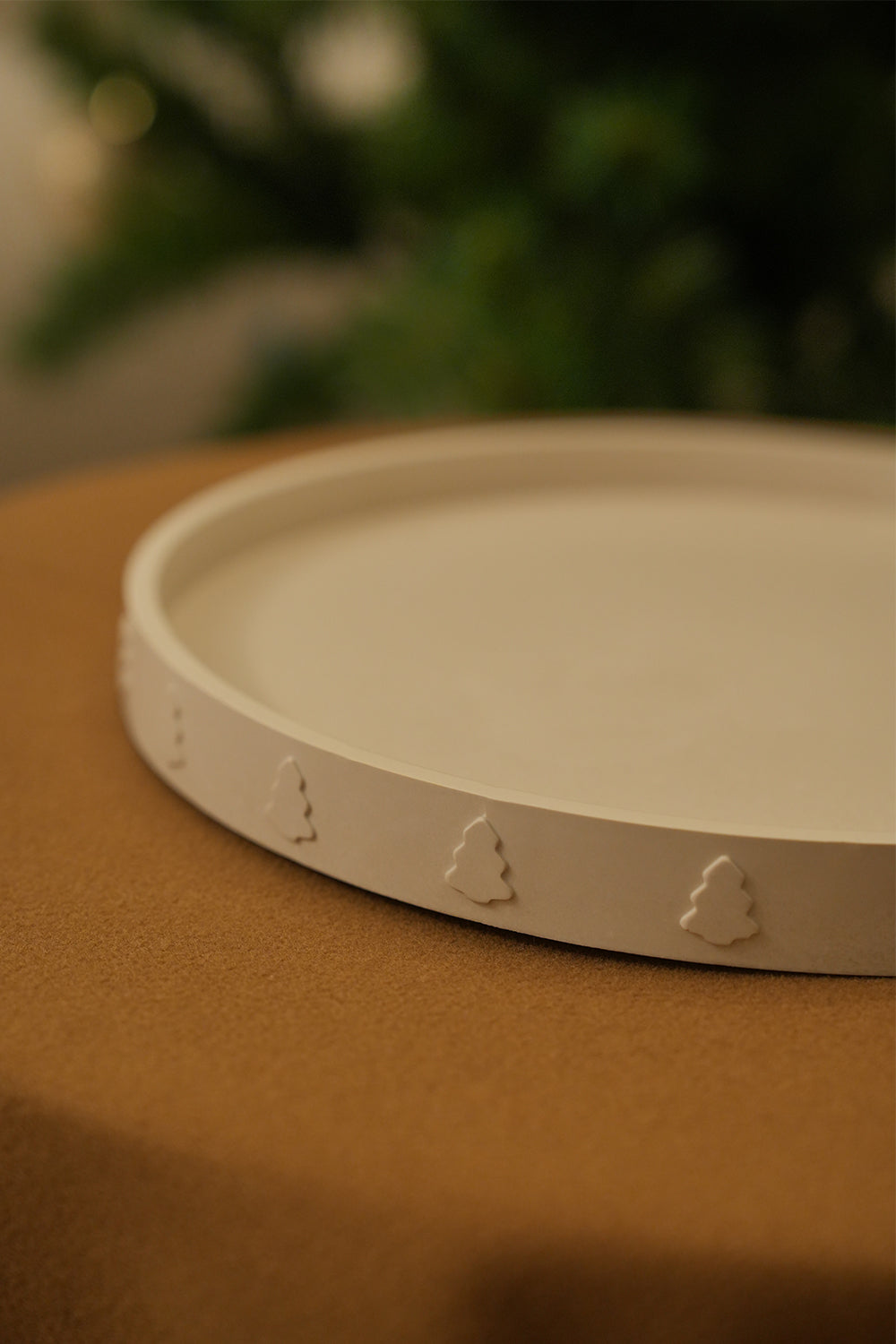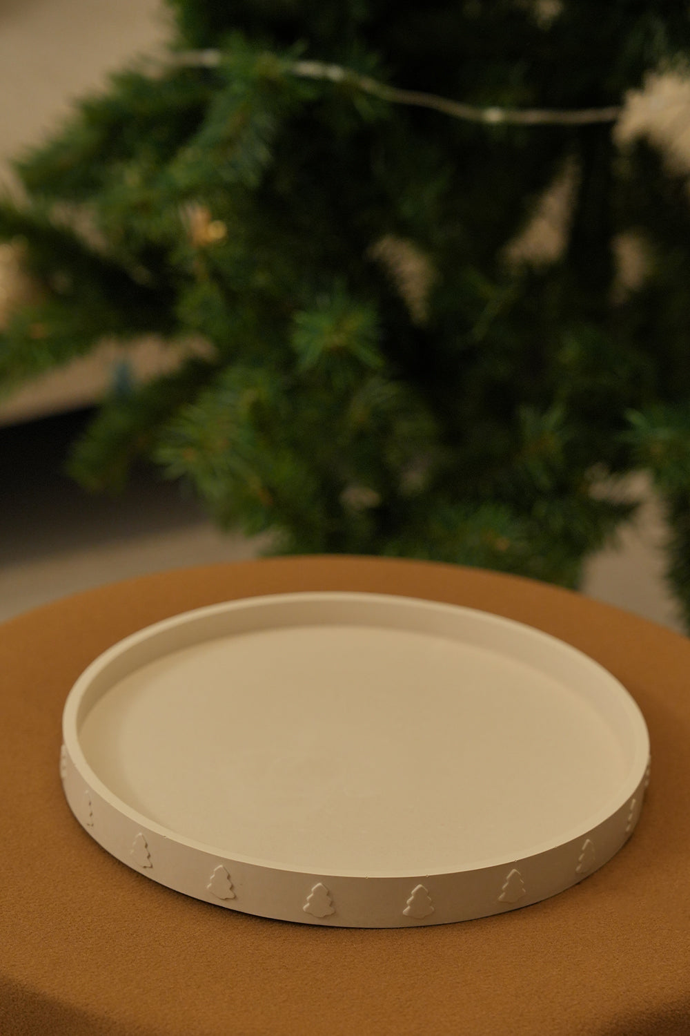 Çam Ağacı Motifli Dekoratif Sunum Tabağı – Beyaz Yılbaşı Objesi, Yeni Yıl Süslemeli Dekoratif Tabak