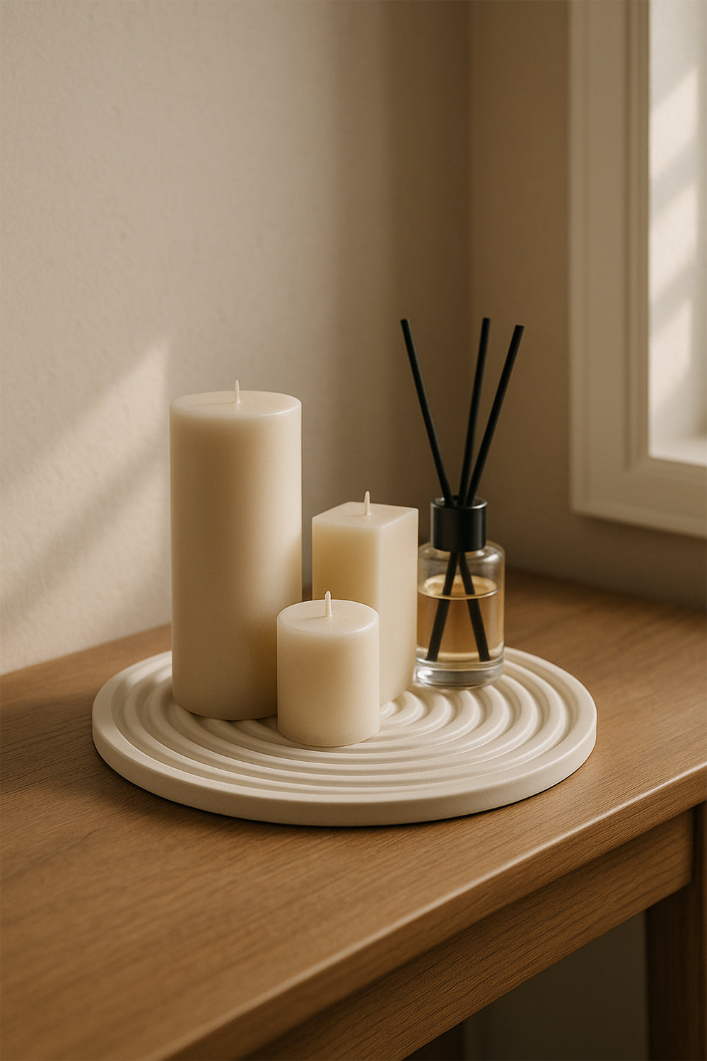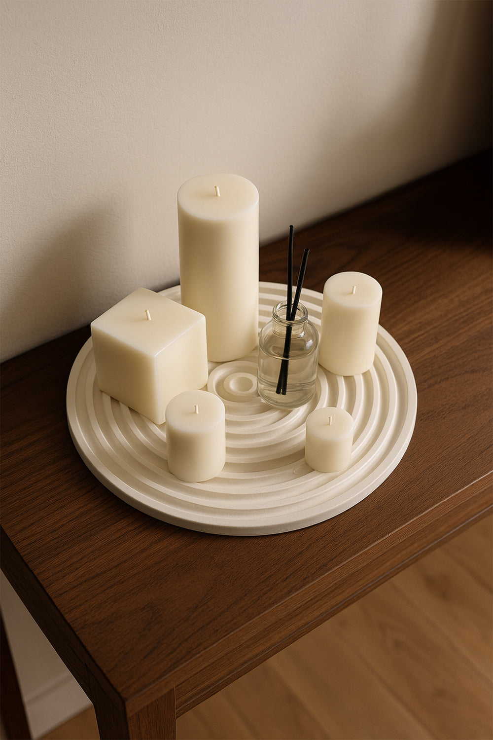 Döngü Ritmi Dekoratif Tabak – Mum & Takı Tabağı , Modern Ev Aksesuarı & Düzenleyici
