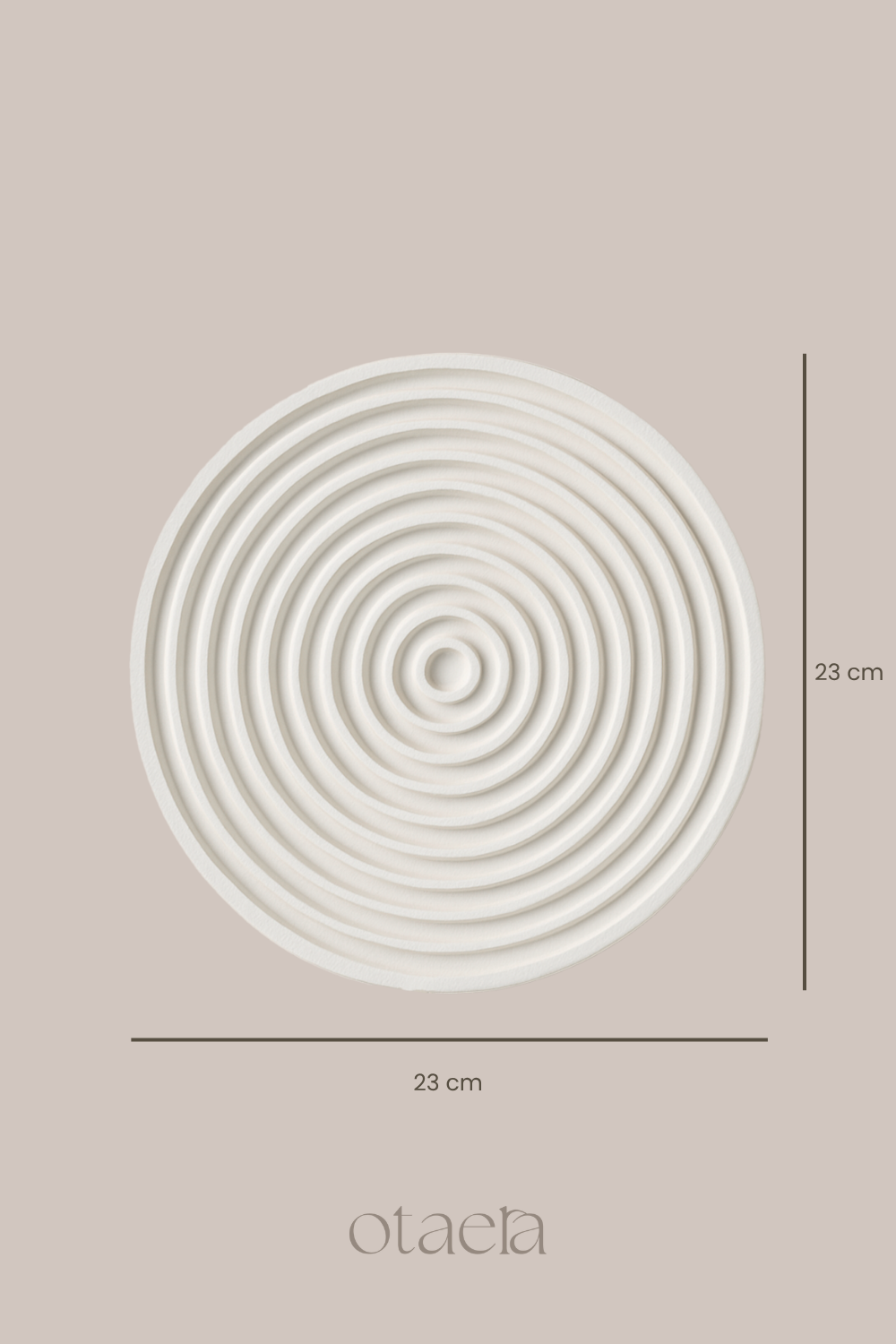 Döngü Ritmi, merkezden dışa doğru ilerleyen halkalarıyla hareketin ve sürekliliğin zarif bir yansımasıdır. Şekilsel sadeliği görünümüyle mekâna güçlü bir estetik değer katar; minimal formu sayesinde hem işlevsel hem de dekoratif bir obje olarak öne çıkar.