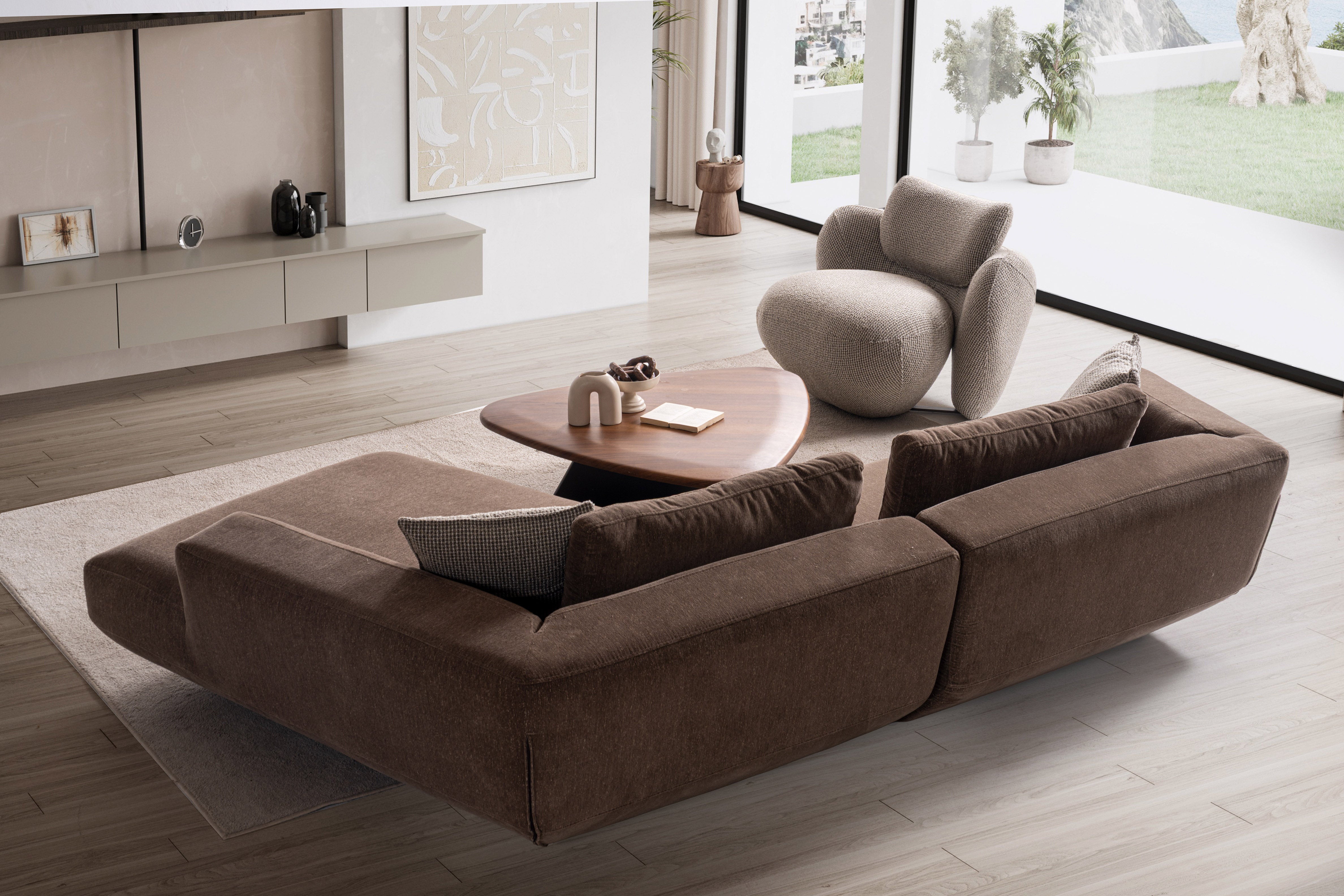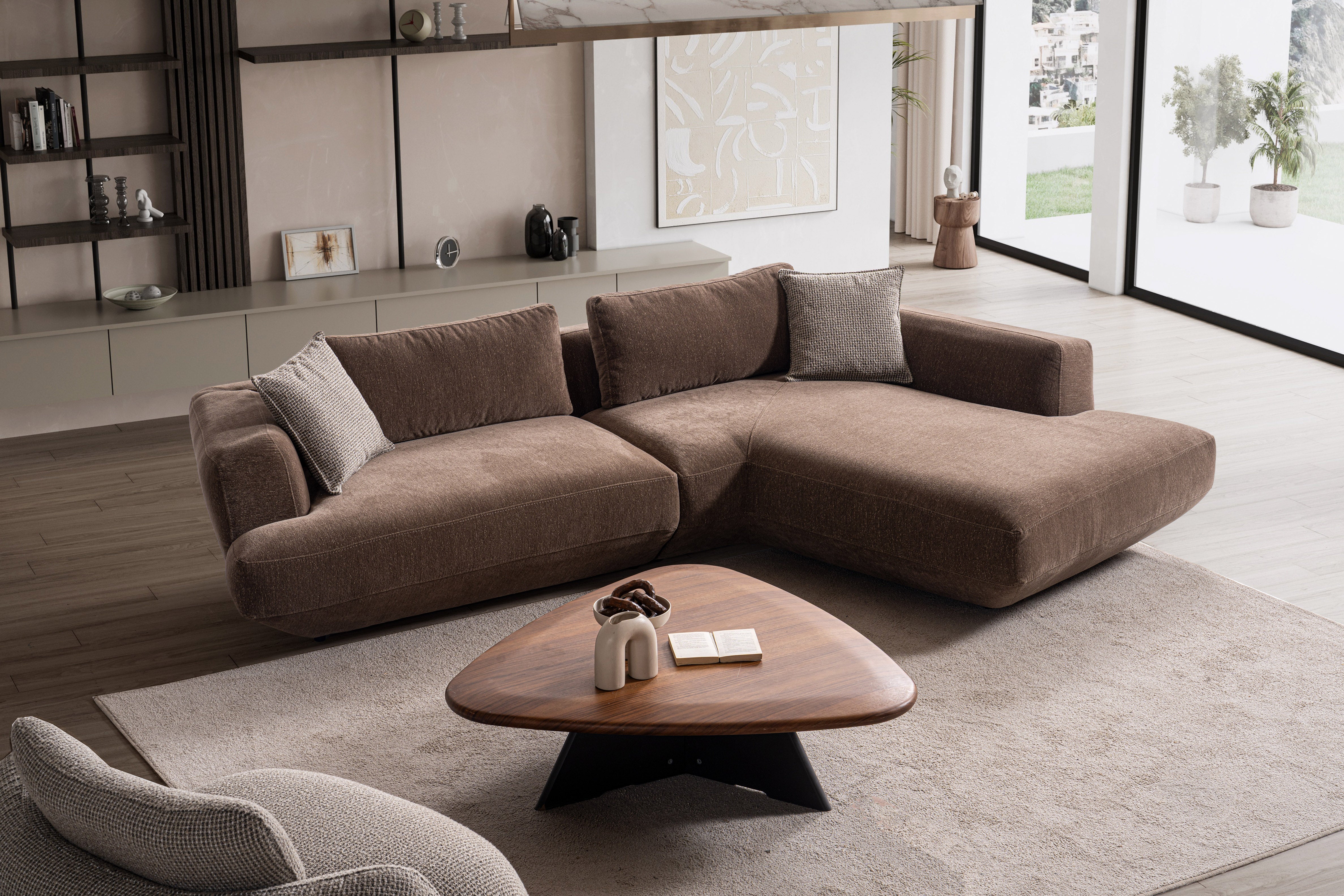 Akıcı formu ve geniş oturum alanıyla Latte Köşe Koltuk, yaşam alanlarına dengeli ve karakterli bir duruş kazandırır. Minimal çizgisi modern ve çağdaş dekorasyonlara uyum sağlar. Geniş sırt minderleri destekleyici bir oturum sunarken, modüler yapısı sayesinde farklı yerleşim planlarına adapte edilebilir.