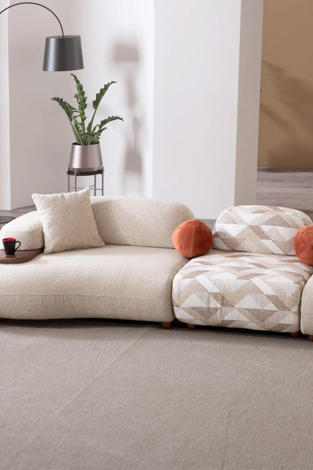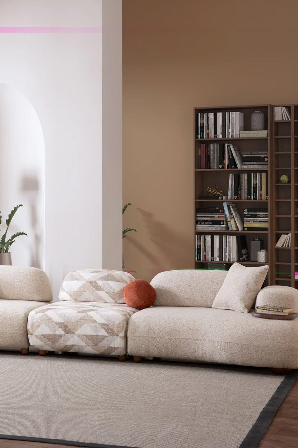 Pera 4'lü koltuk, evinizin her köşesinde özgün ve doğal bir atmosfer yaratmak için tasarlandı. Yumuşak dokusu ve ergonomik tasarımı sayesinde rahatça dinlenmenizi sağlar. Modüler yapısı sayesinde farklı şekillerde birleştirilebilir, böylece alanınıza ve ihtiyacınıza göre kolayca uyarlanabilir, minimalist detayları ve doğal renk tonlarıyla zamansız bir şıklık sunar. Seyyar sırt ve kol minderleri, otururken düşmeyecek şekilde mıknatıslı tasarlanmıştır. Talep edildiği takdirde sabit yapılabilmektedir.