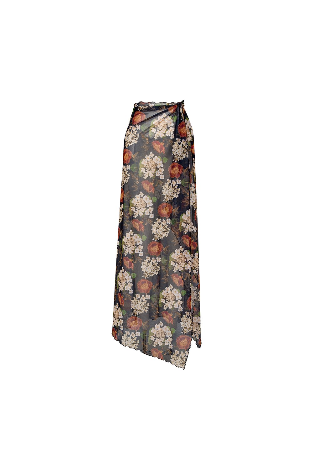Alessia Koyu Kahve Çiçek Desenli Bağcıklı Uzun Pareo Etek