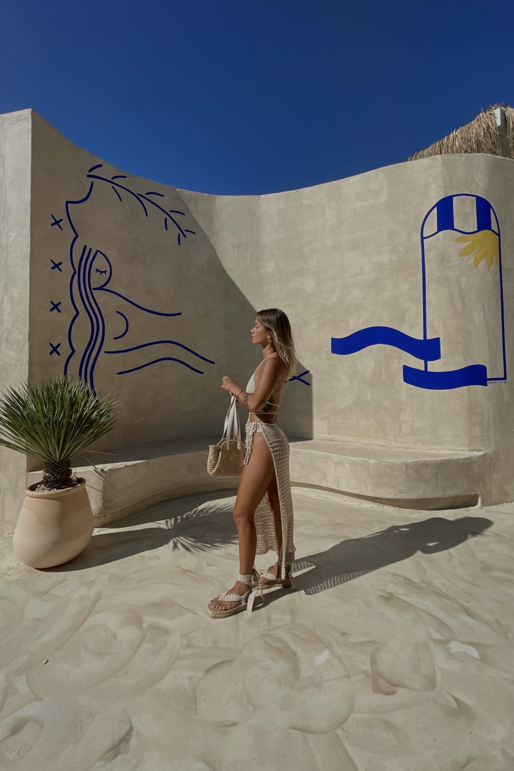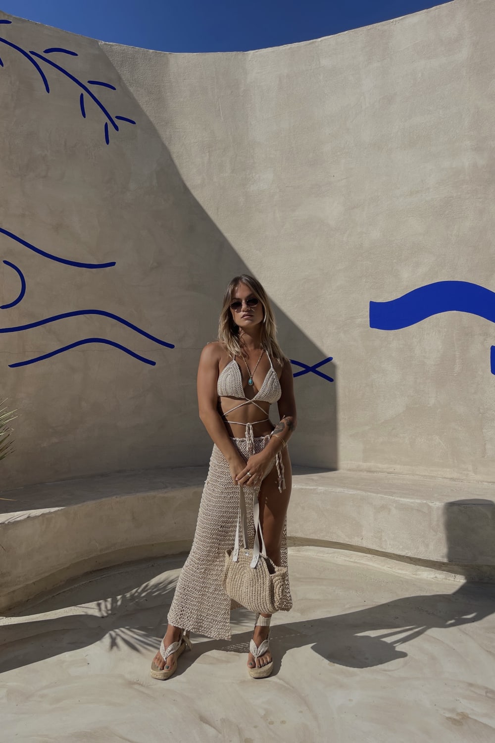 Örgü Plaj Elbisesi / Örgü Takım Bej
