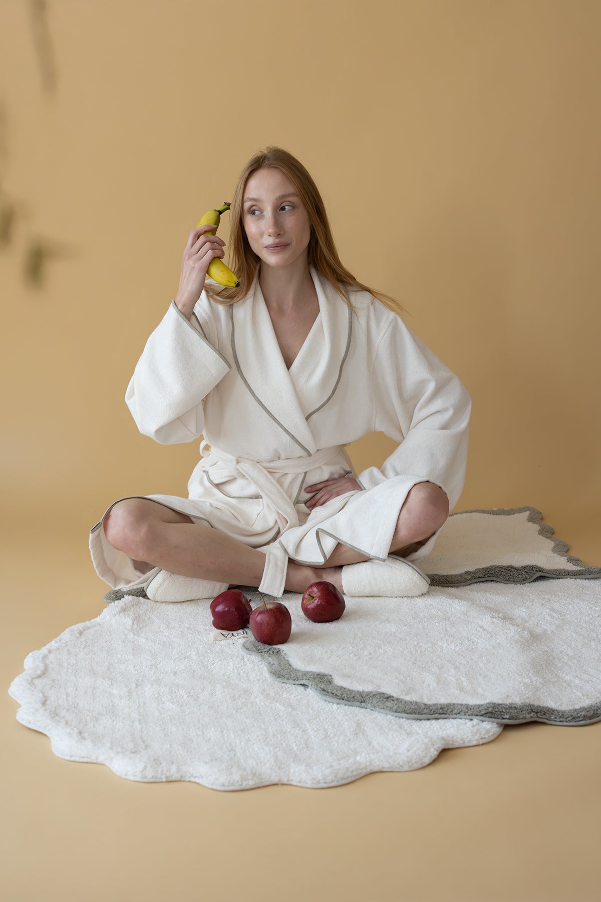 Scallop paspas, deniz kabuklarının dalgalı kenarlarından ilham alan zarif tasarımıyla banyonuza doğal bir estetik kazandırır. Bambu liflerinden üretilen yapısı sayesinde çevre dostu, dayanıklı ve hijyeniktir. Su emici özelliği ile ıslaklığı hızla emer, kısa sürede kurur ve size her adımda yumuşak bir konfor sunar.